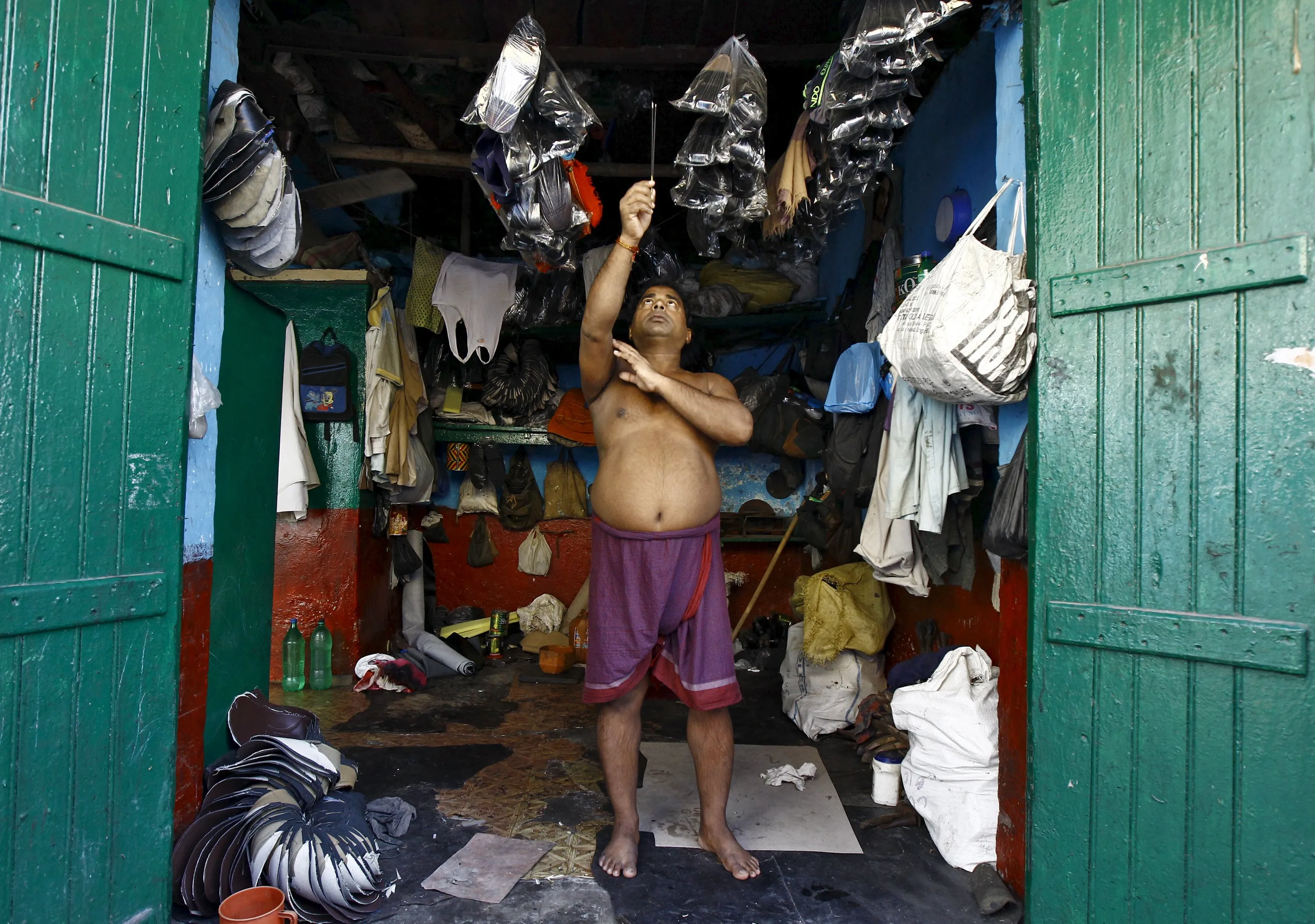 A shopkeeper holds burning incense as he prays inside his shop before the start of his business day in Kolkata, India, September 28, 2015. (Photo by Rupak De Chowdhuri/Reuters)