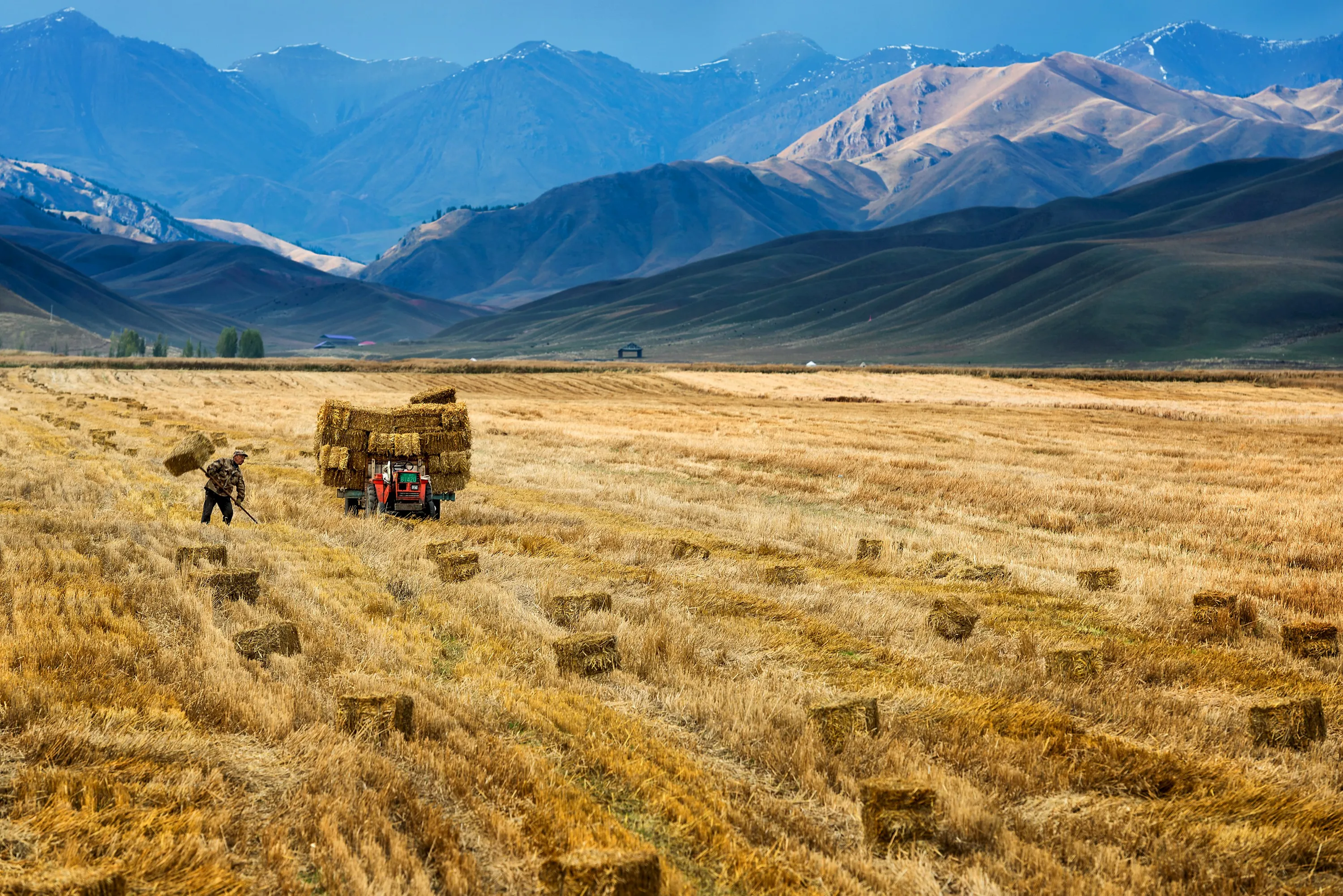 A farmer harvests in a crop field in Yili, Xinjiang Autonomous Region, October 3, 2015. The world's largest makers of tractors and combines are finding a rare opportunity for growth in China despite a sharp slowdown in the world's No. 2 economy, with big farm machines in demand as the rural labor force shrinks and plot sizes grow. (Photo by Reuters/China Daily)