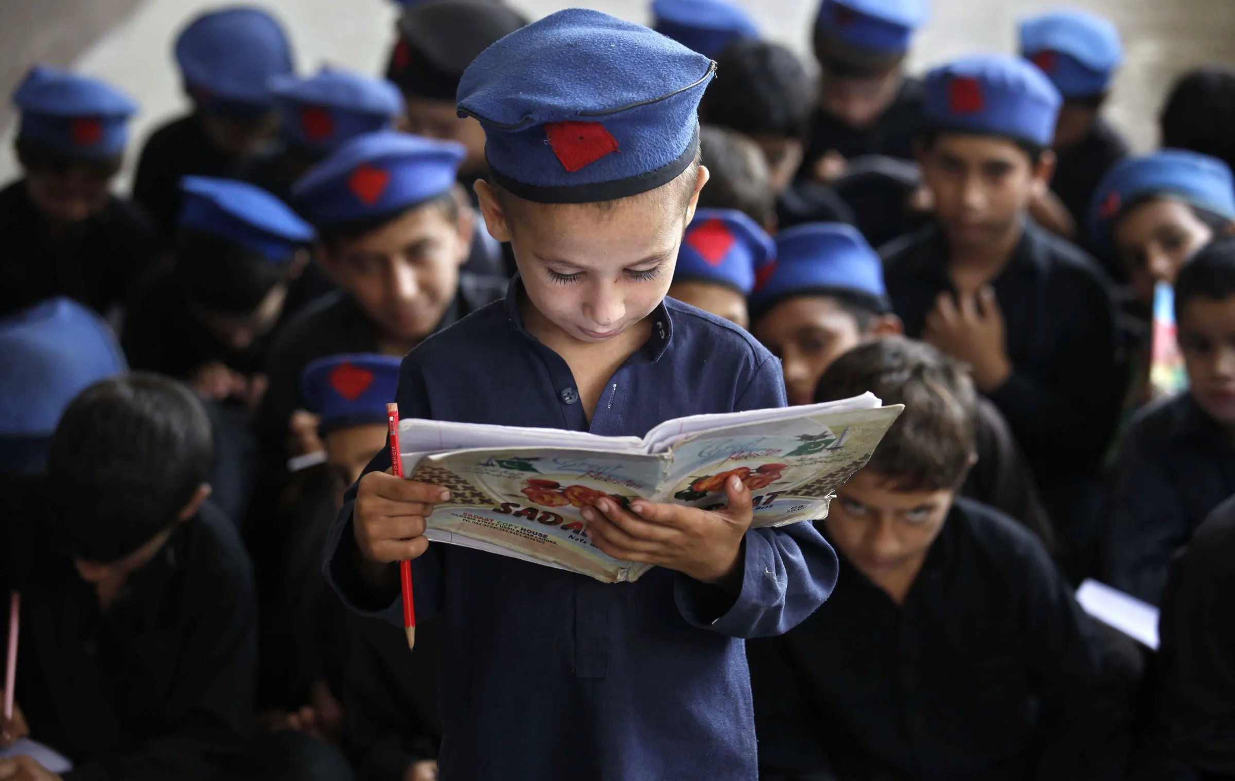 Pakistani boys attend school a day ahead of the International Literacy Day in Peshawar, Pakistan, 07 September 2015. International Literacy Day is observed on 08 September annually and the theme this year is “Literacy and Sustainable Societies”. (Photo by Bilawal Arbab/EPA)
