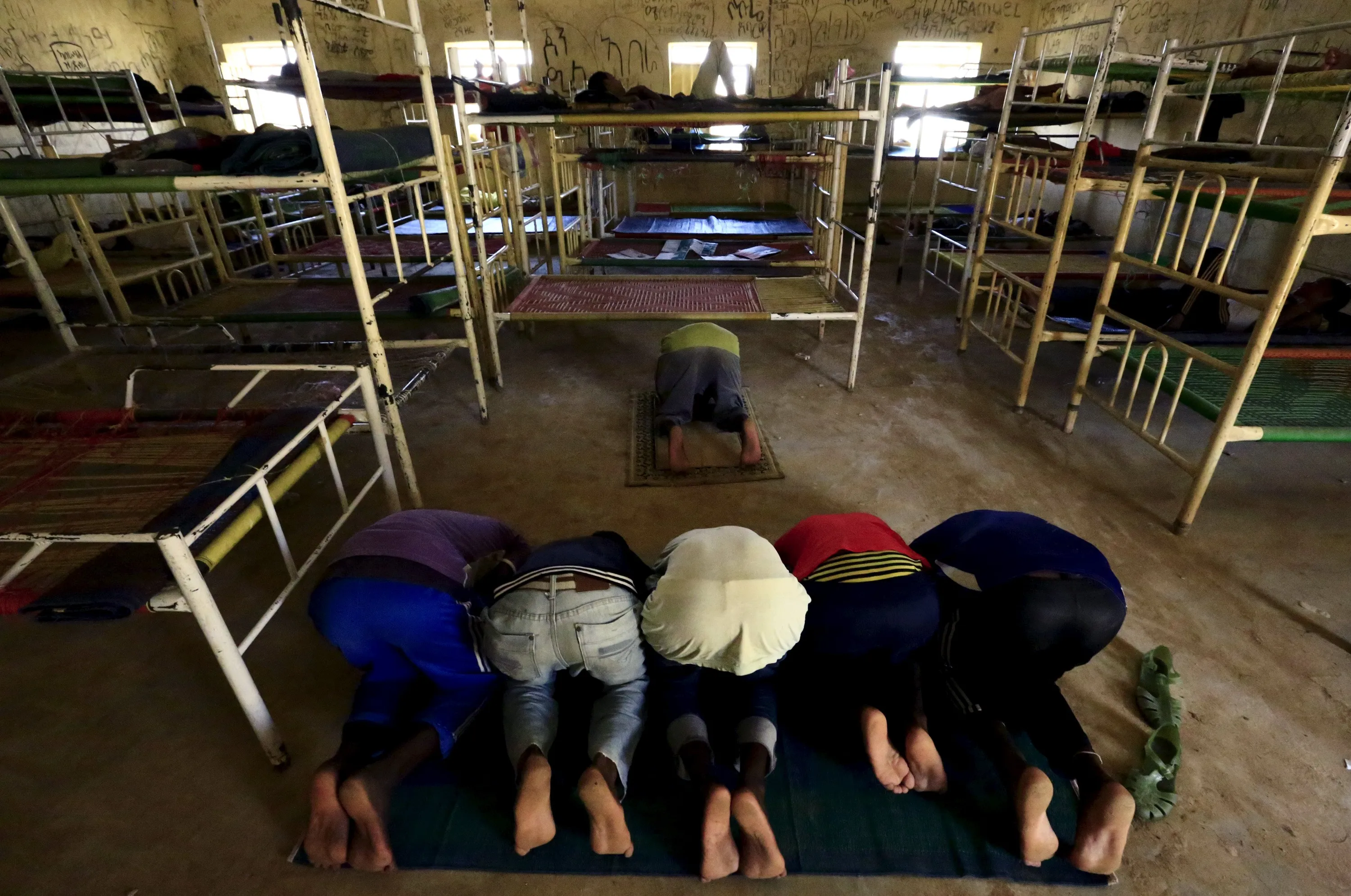 Eritrean asylum seekers pray inside a new arrivals center in Wad Sharifey refugee camp during a visit by European Union Ambassadors to the camp at Kassala State in East Sudan October 22, 2015. (Photo by Mohamed Nureldin Abdallah/Reuters)