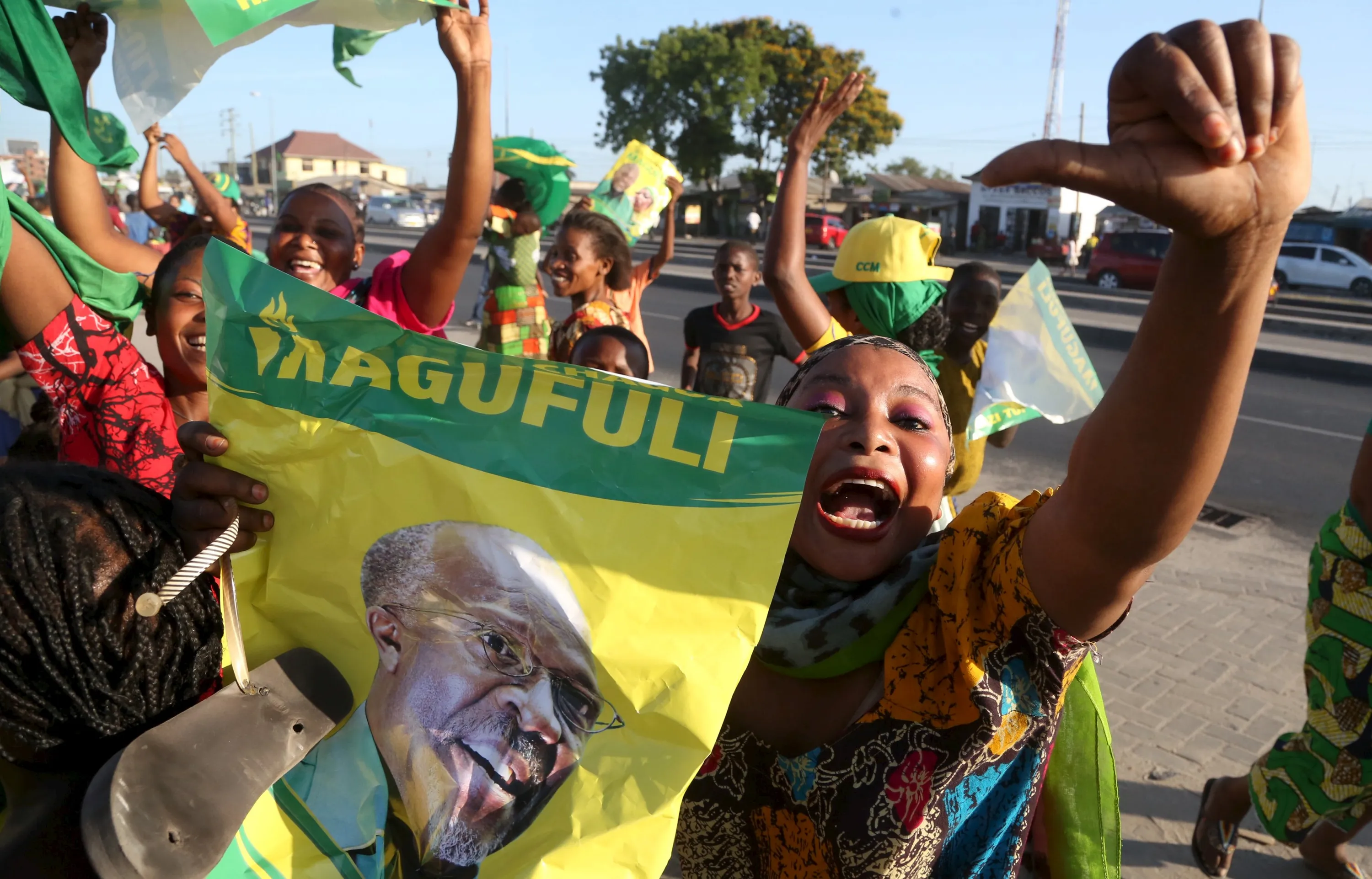 Supporters of Tanzania Presidential candidate of the ruling Chama Cha Mapinduzi (CCM) John Pombe Magufuli celebrate after he was declared the winner of the presidential election, in Dar es Salaam, October 29, 2015. (Photo by Emmanuel Herman/Reuters)