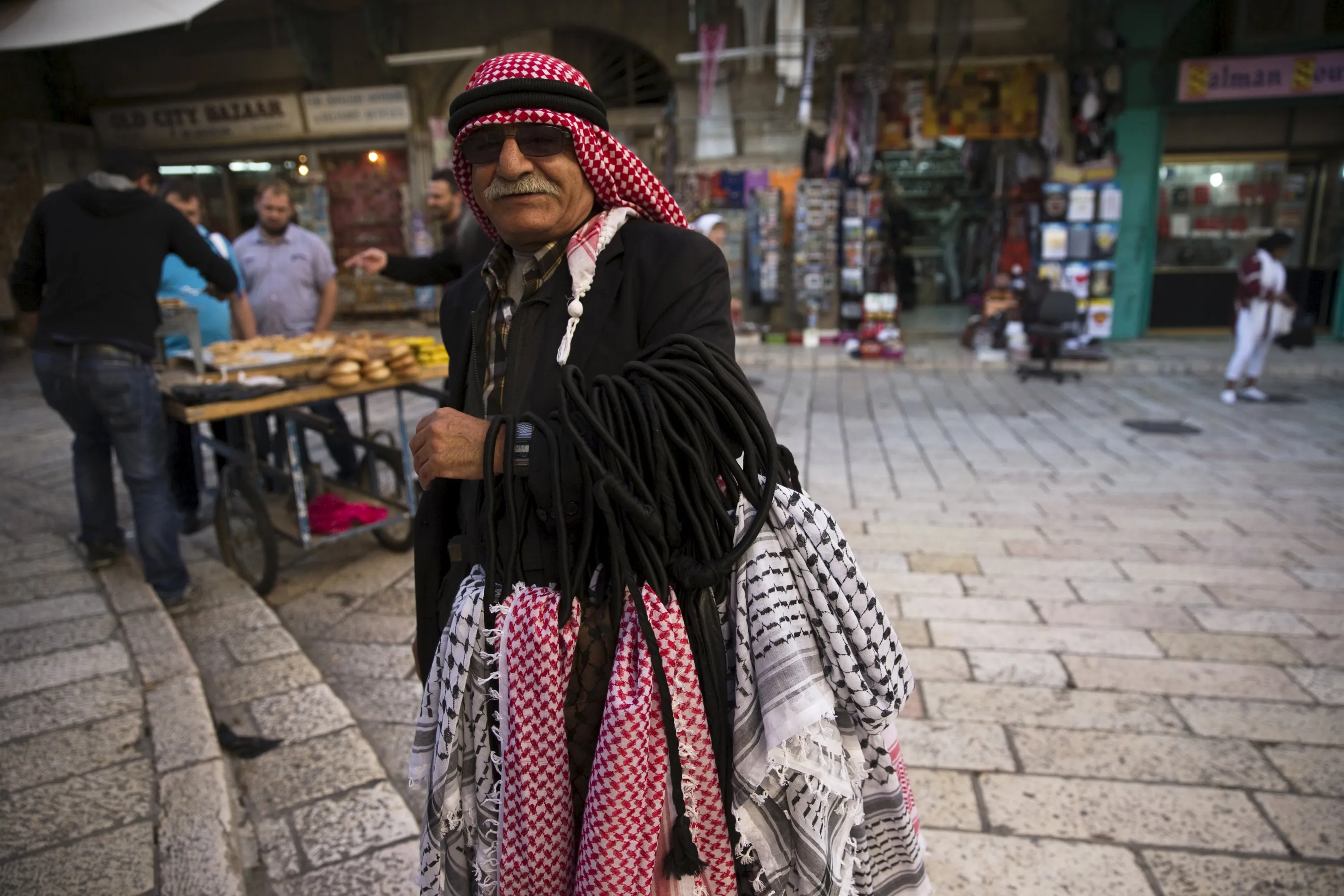 A Palestinian vendor stands near the Church of the Holy Sepulchre in Jerusalem's Old City October 29, 2015. A month ago, you couldn't get a table in Abu Shukri's hummus restaurant. Tucked in a backstreet of the Old City, off the Via Dolorosa, the place has long been regarded as the best hummus joint in the Holy Land. But on Oct. 2, yards from Abu Shukri's front door, a Palestinian law student stabbed and killed two Israelis, one of the first attacks in a wave of violence that has left 11 Israelis and 61 Palestinians, including 34 assailants, dead. (Photo by Ronen Zvulun/Reuters)