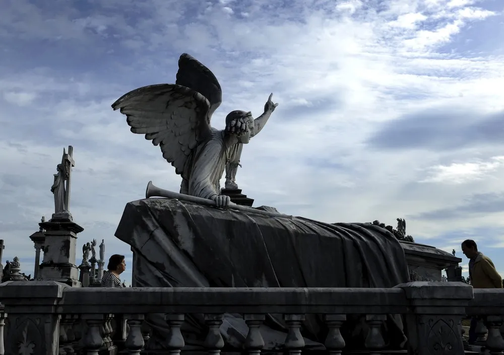 People walk next to of the pantheon of the Marquesa de San Juan de Nieva, chosen as the best tomb sculpture of Spain in a Spanish magazine this week, in the municipal cemetery of La Carriona in Aviles, northern Spain, October 29, 2015. Catholics will mark All Saints' Day on Sunday by visiting cemeteries and graves of deceased relatives and friends. (Photo by Eloy Alonso/Reuters)