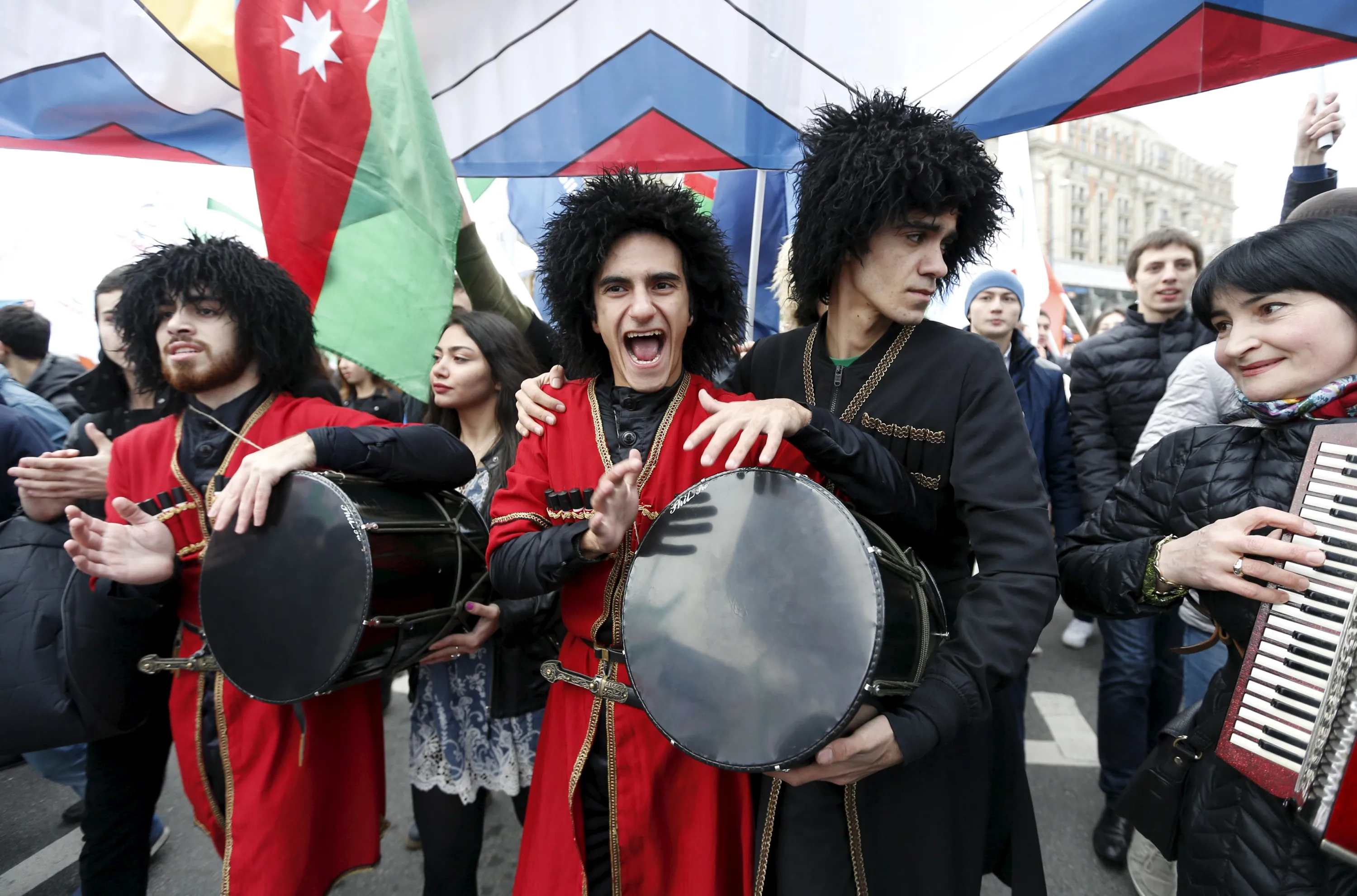 Participants dressed in national costumes march during a demonstration on National Unity Day in Moscow, Russia November 4, 2015. Russia marks National Unity Day on November 4 to celebrate the defeat of Polish invaders in 1612. According to the participants, they were demonstrating to demand for greater rights for all Russians. (Photo by Sergei Karpukhin/Reuters)