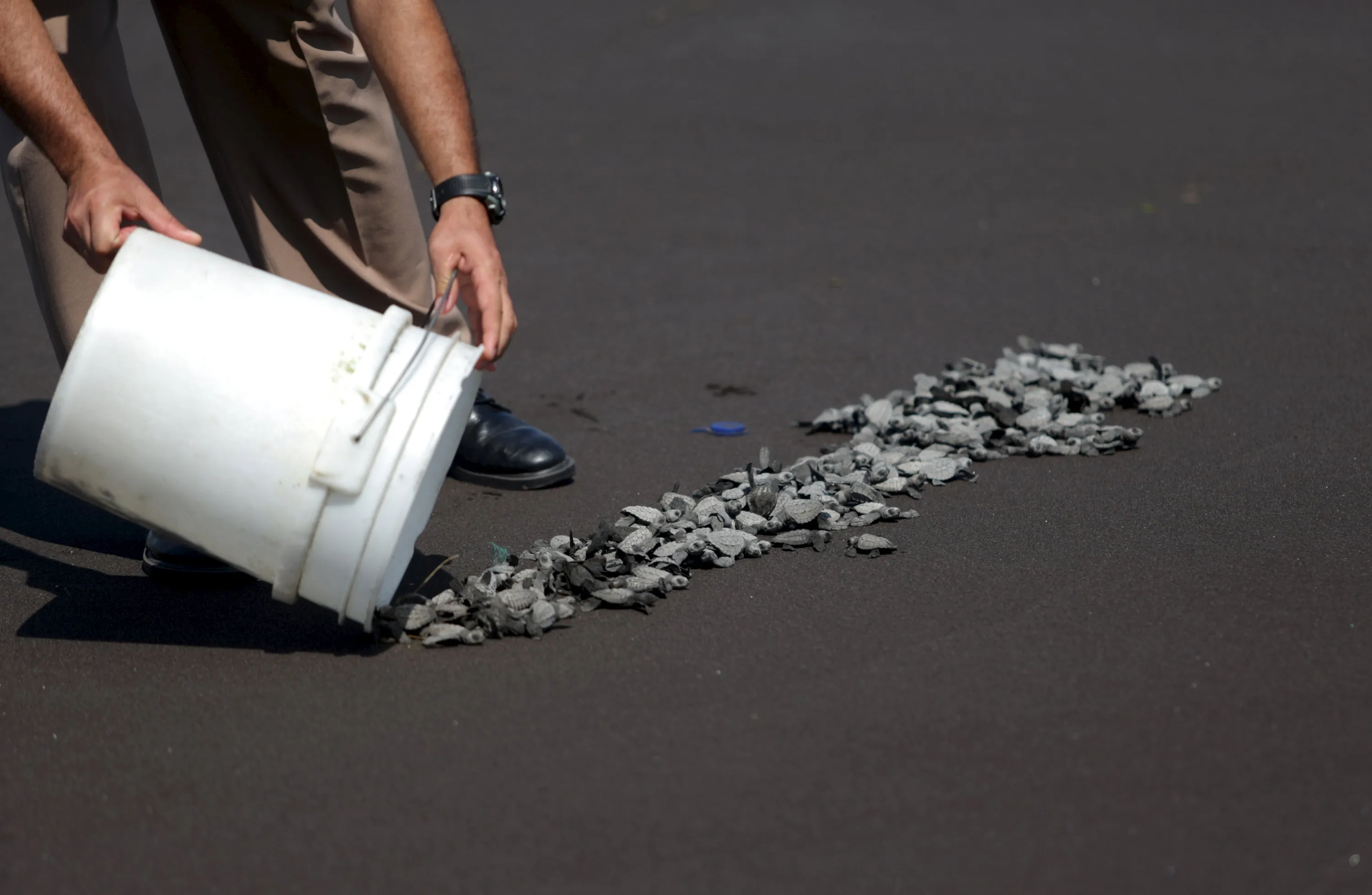 Turtles are released, as part of conservation efforts, on the beach of Puerto Quetzal in Guatemala, November 4, 201. (Photo by Jorge Dan Lopez/Reuters)