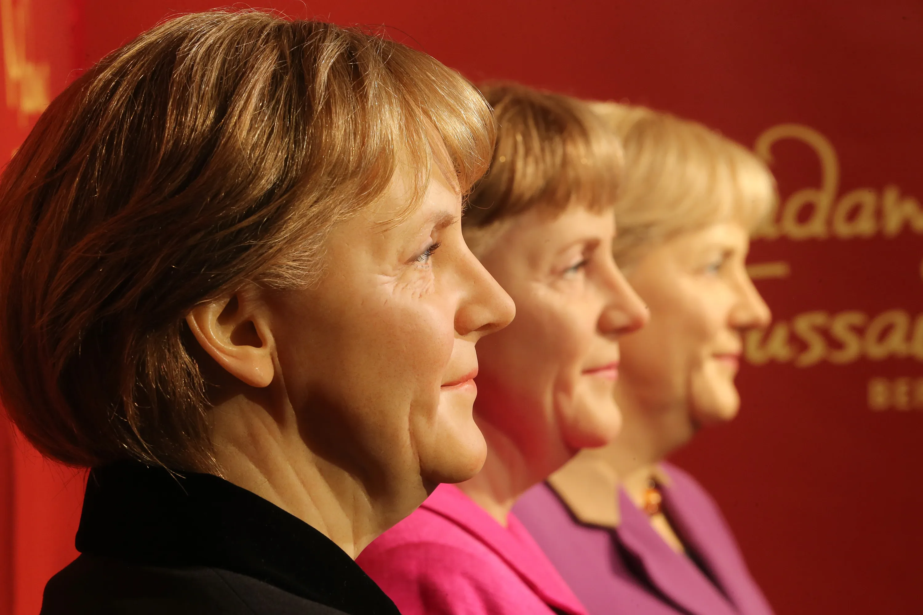 Three waxwork models of the country’s chancellor, Angela Merkel, on display at Madame Tussauds to mark the 10th anniversary of her time in office in Berlin, Germany on November 16, 2015. (Photo by Wolfgang Kumm/DPA/Corbis)