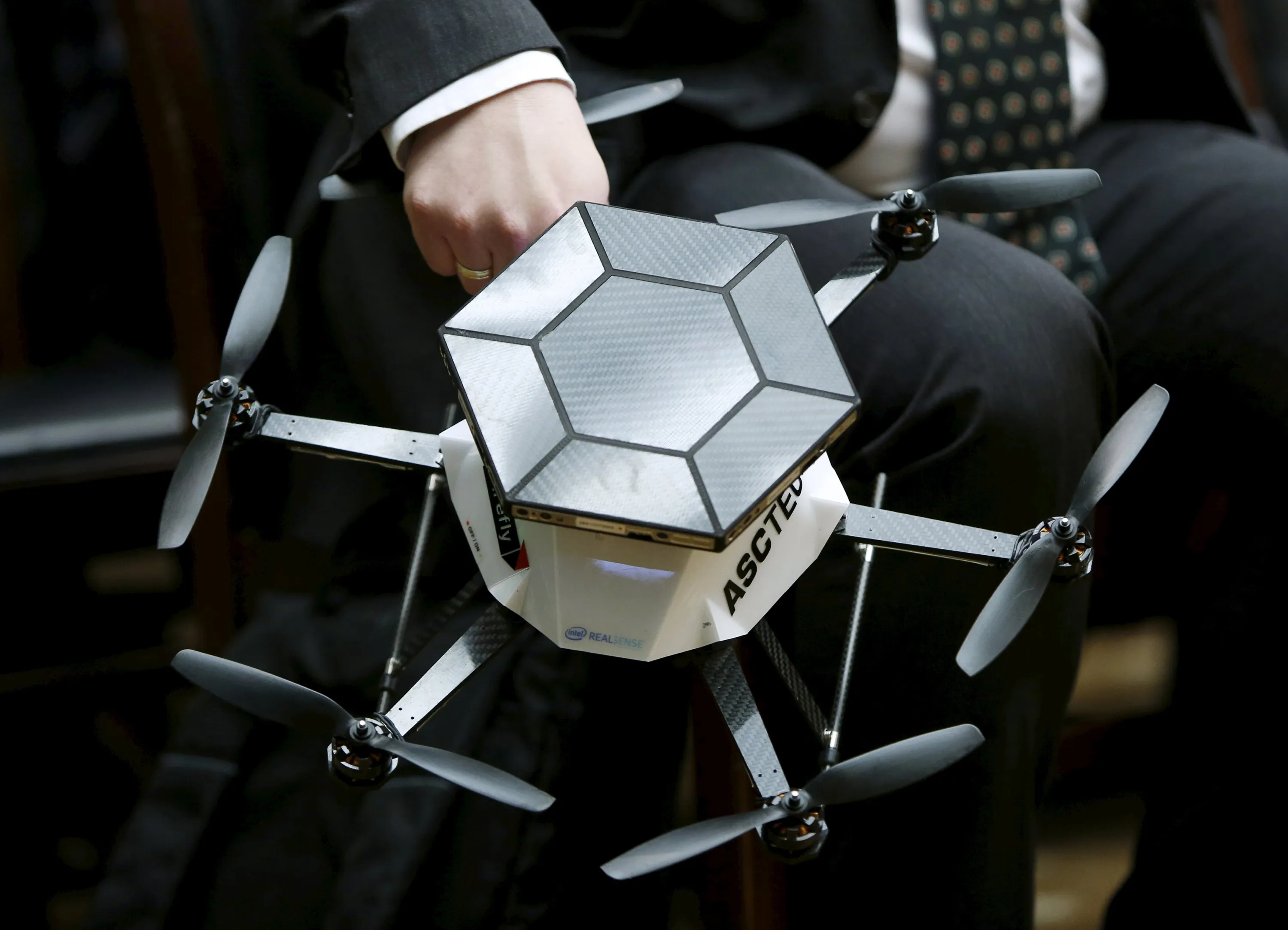 Jan Stumpf of Ascending Technologies holds an Intel AscTec Firefly drone during a flight demonstration at the House Commerce, Manufacturing and Trade subcommittee on Capitol Hill in Washington November 19, 2015. (Photo by Gary Cameron/Reuters)