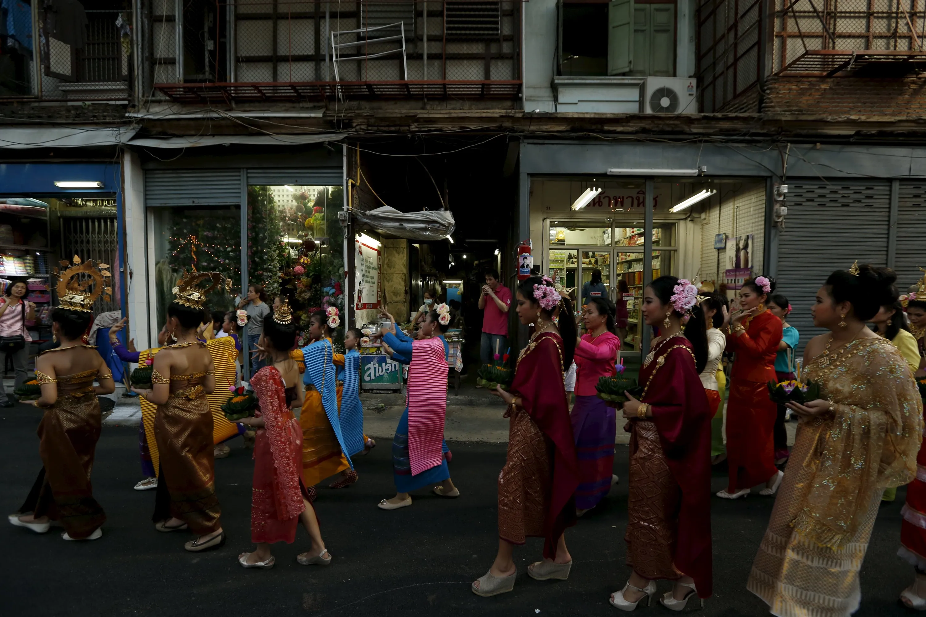 Thai girls carry Krathongs as they attend a parade during the Loy Krathong festival in downtown Bangkok, November 25, 2015. (Photo by Jorge Silva/Reuters)