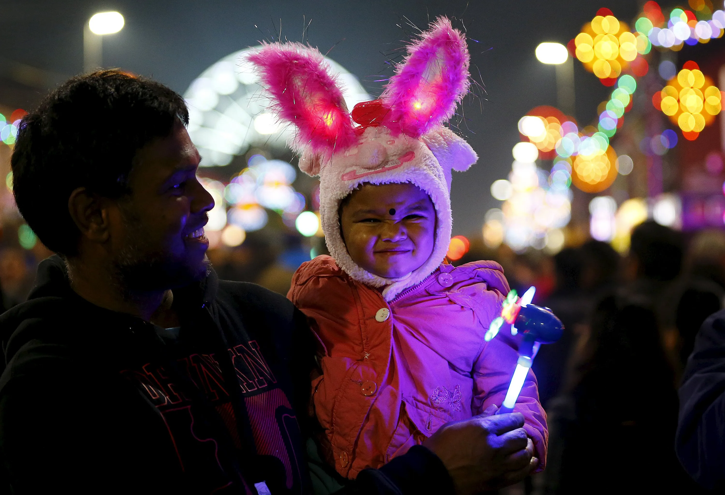 A girl reacts to the camera after the switching on of Diwali lights in Leicester, Britain, November 1, 2015. The Diwali celebration in Leicester is one of the largest in the world outside of India, with around 35,000 people attending the switch-on of the lights in the heart of the city's Asian community. (Photo by Darren Staples/Reuters)
