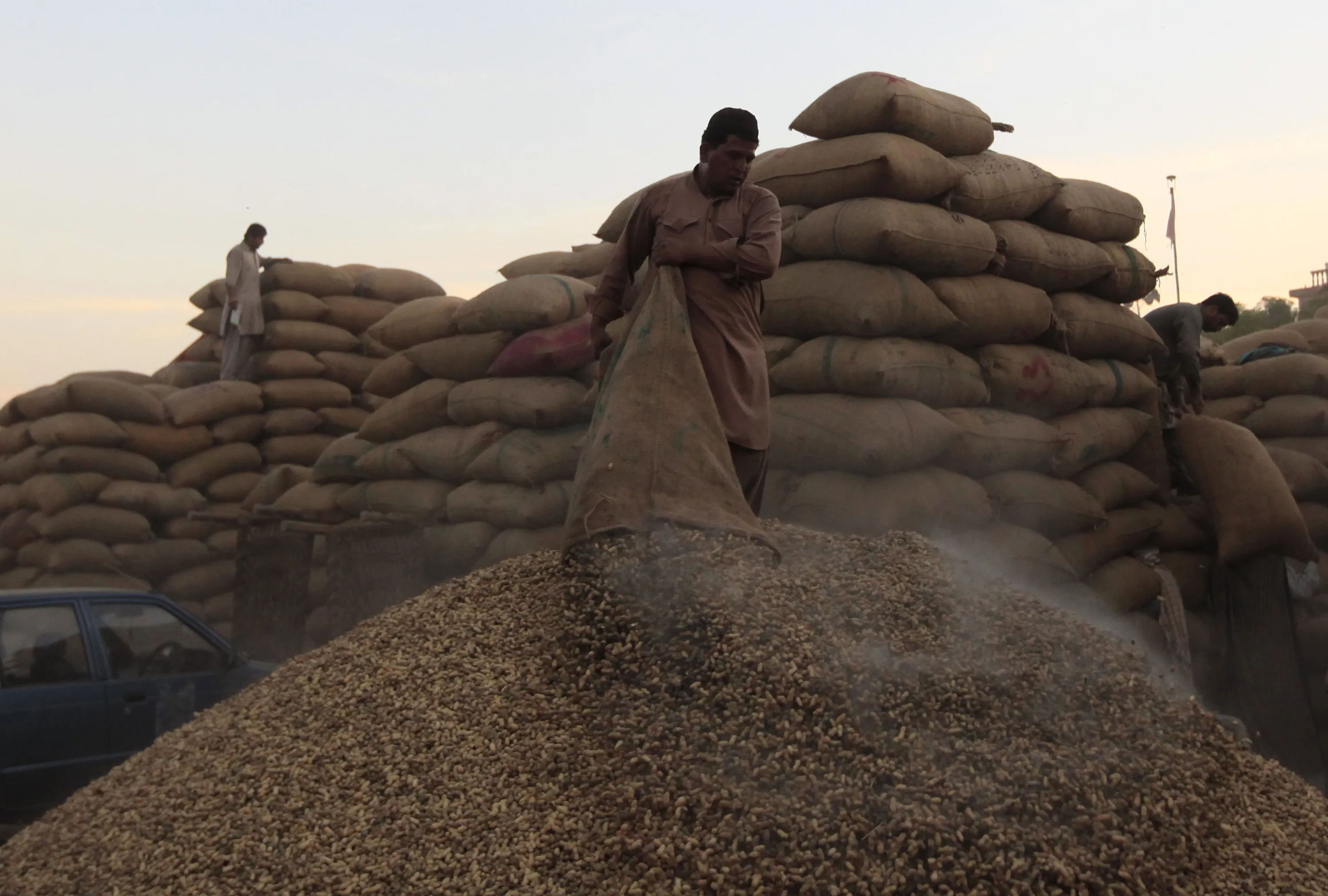 A laborer unloads sacks of peanuts to dry before delivering them to a wholesale market in Faisalabad, Pakistan November 18, 2015. (Photo by Fayyaz Hussain/Reuters)