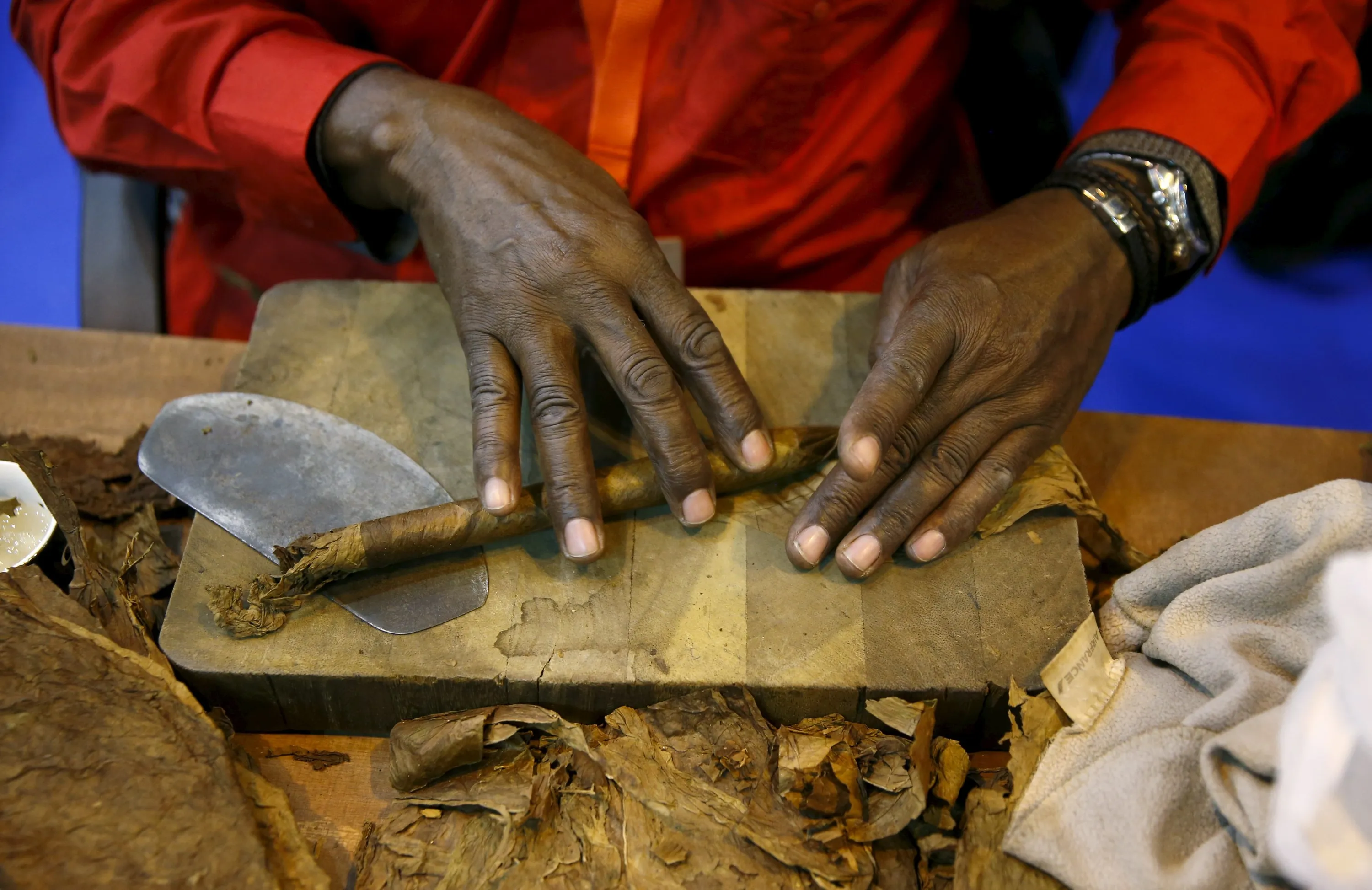 A Cuban man roles a cigar at the FITUR international tourism trade fair in Madrid, Spain, January 20, 2016. (Photo by Andrea Comas/Reuters)