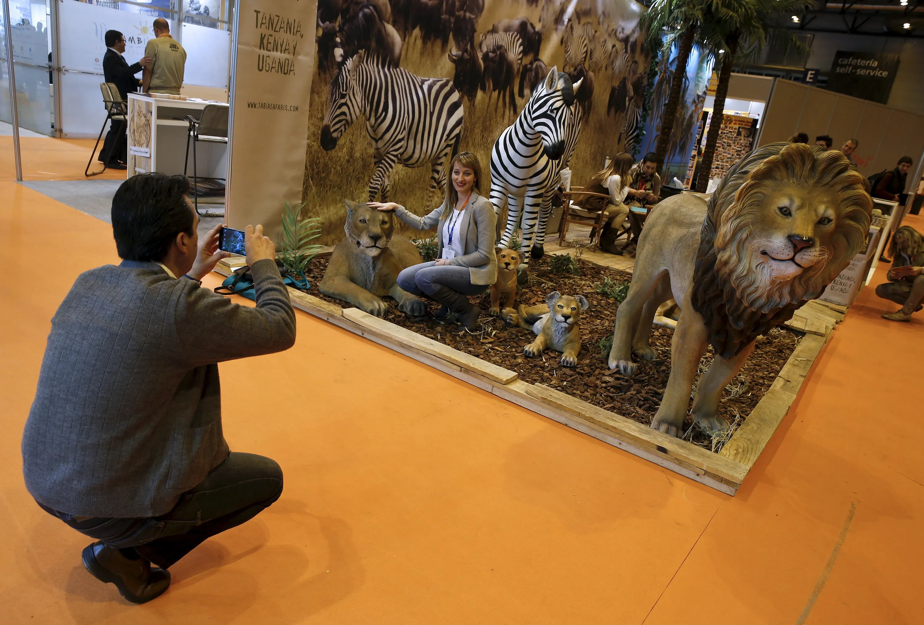 A woman has her picture taken in the Africa area at the FITUR international tourism trade fair which opened in Madrid, Spain, January 20, 2016. (Photo by Andrea Comas/Reuters)