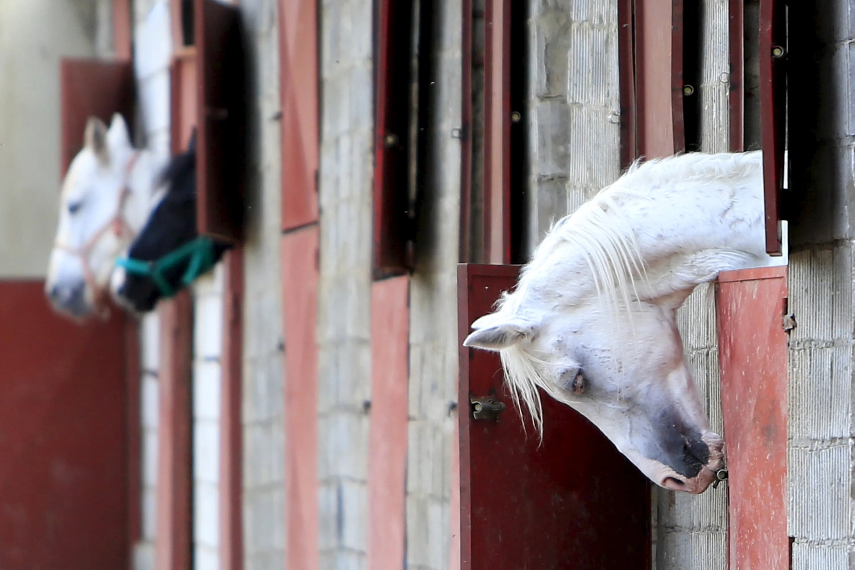 A mare attempts to reach the lock of a stable in the port city of Sidon, southern Lebanon January 22, 2016. (Photo by Ali Hashisho/Reuters)