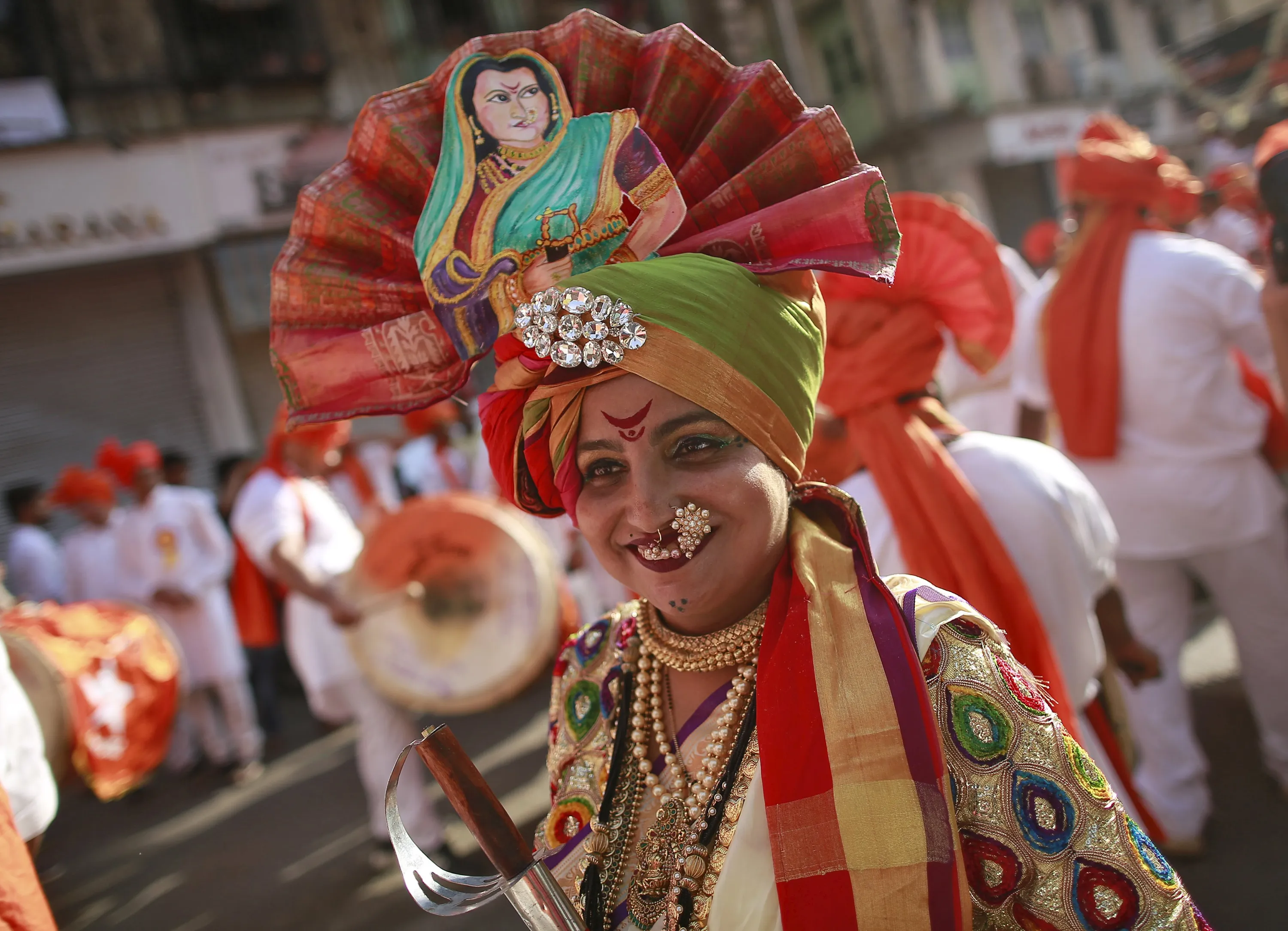 A Maharashtrian woman dressed in traditional costume attends celebrations to mark the Gudi Padwa festival in Mumbai, India, April 8, 2016. (Photo by Danish Siddiqui/Reuters)