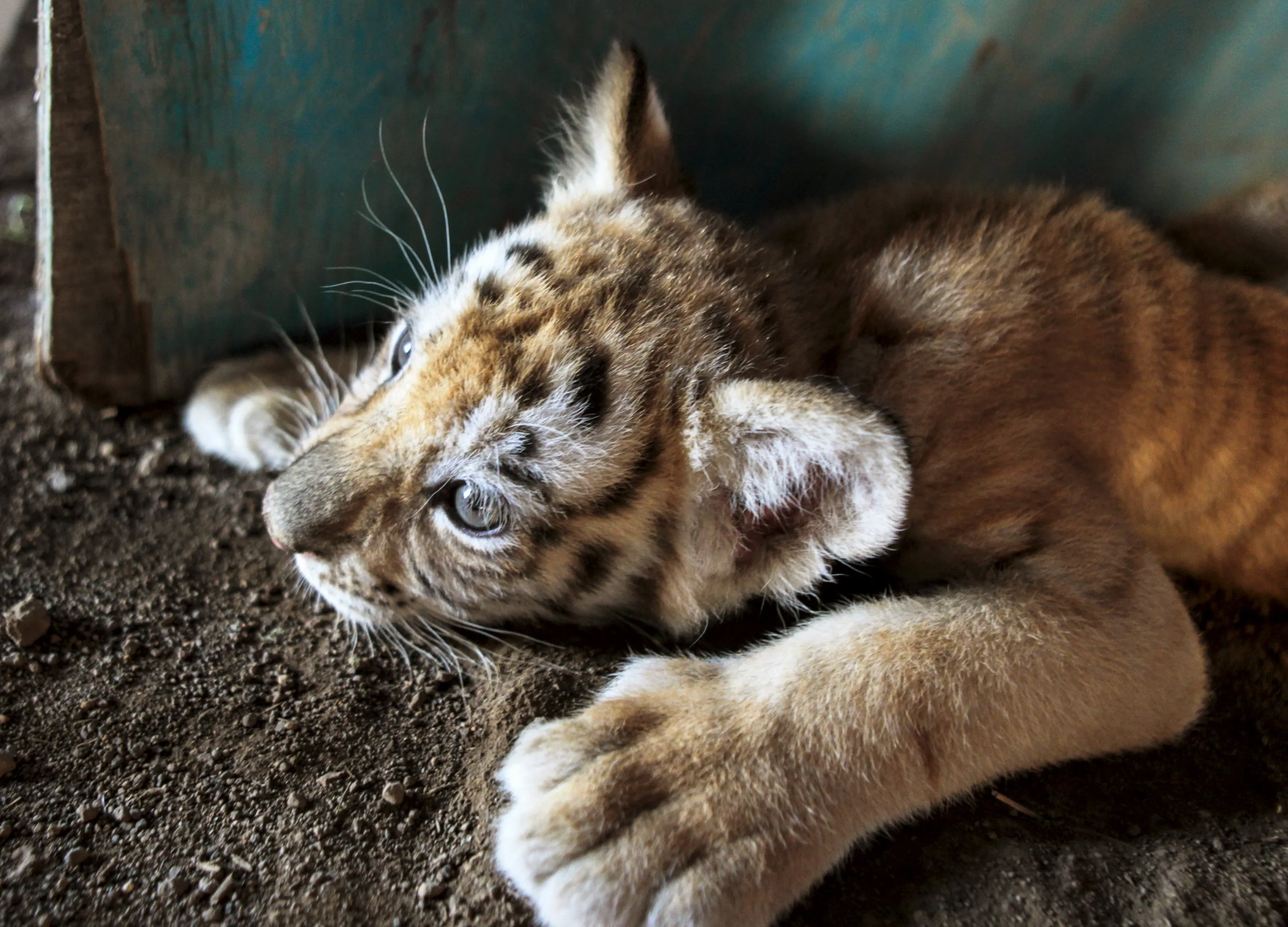 A golden bengal tiger cub is photographed while take a break inside Circo de Renato (Renato Circus) at Ciudad Sandino, Nicaragua April 6, 2016. (Photo by Oswaldo Rivas/Reuters)