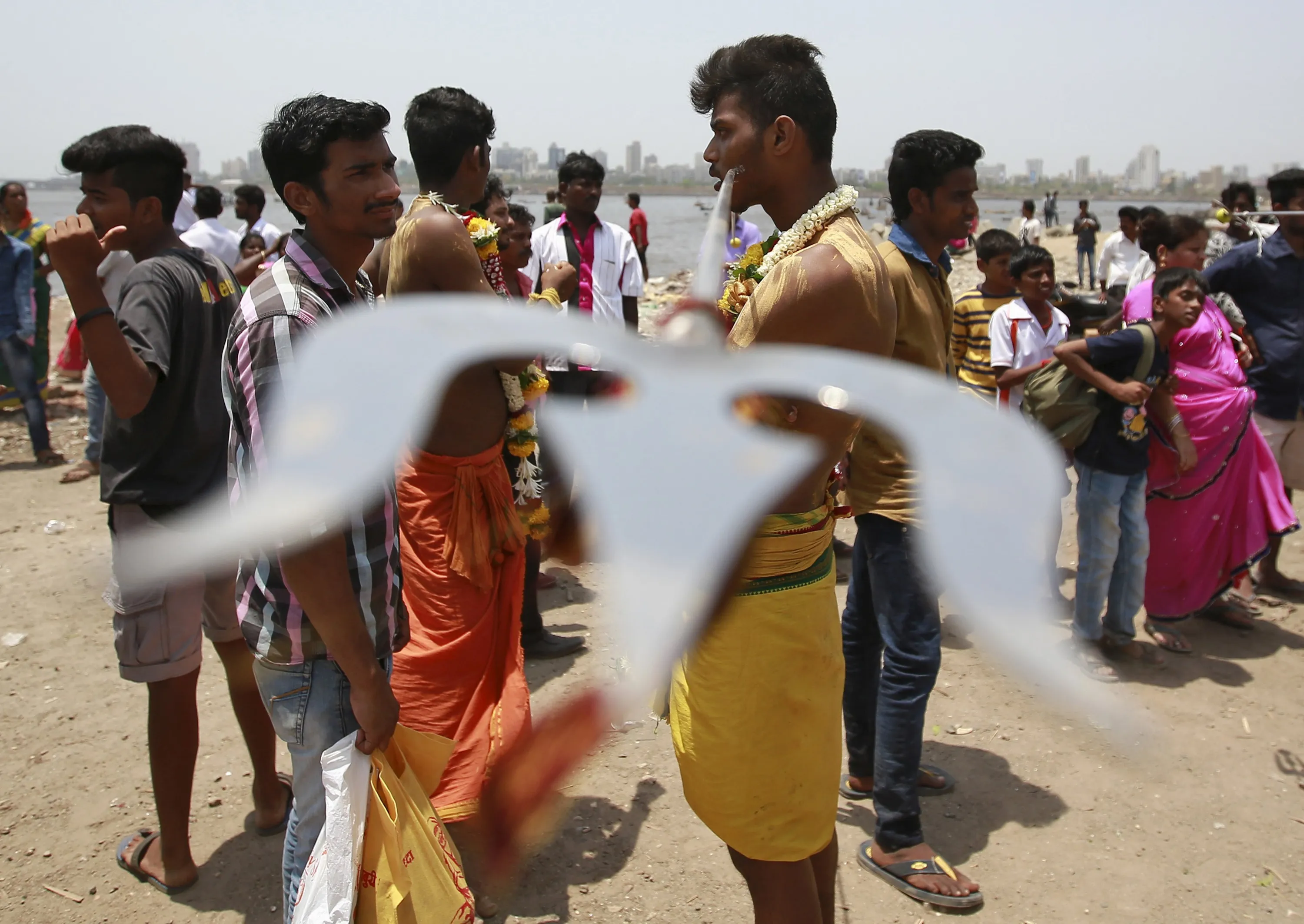 A devotee with his mouth pierced with a trident speaks to another during a religious procession dedicated to Goddess Mariamman in Mumbai, India, April 19, 2016. (Photo by Danish Siddiqui/Reuters)