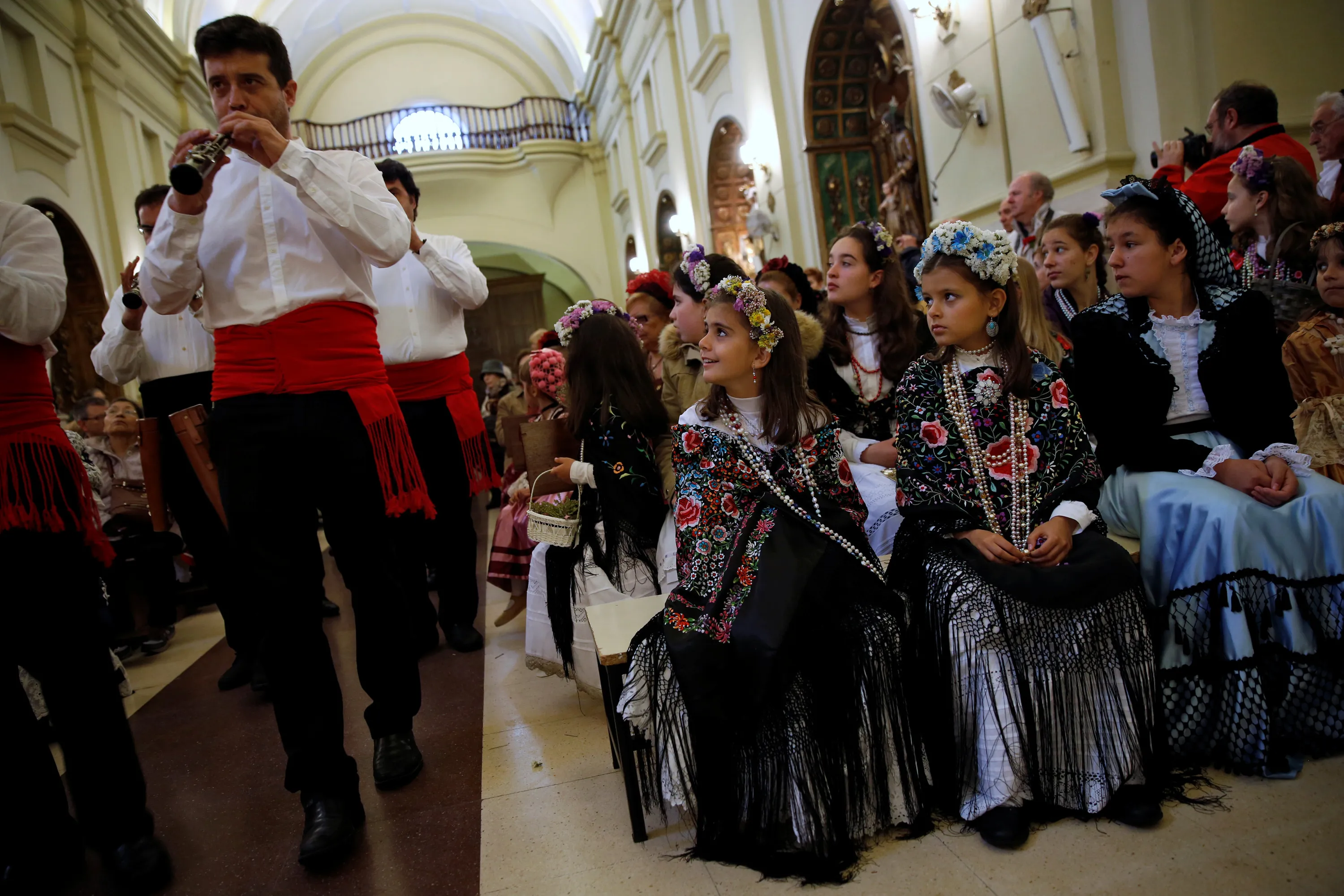 “Maya” girls and their assistants look at musicians play at San Lorenzo church during “Las Mayas” festivity in Madrid, Spain, May 8, 2016. (Photo by Susana Vera/Reuters)
