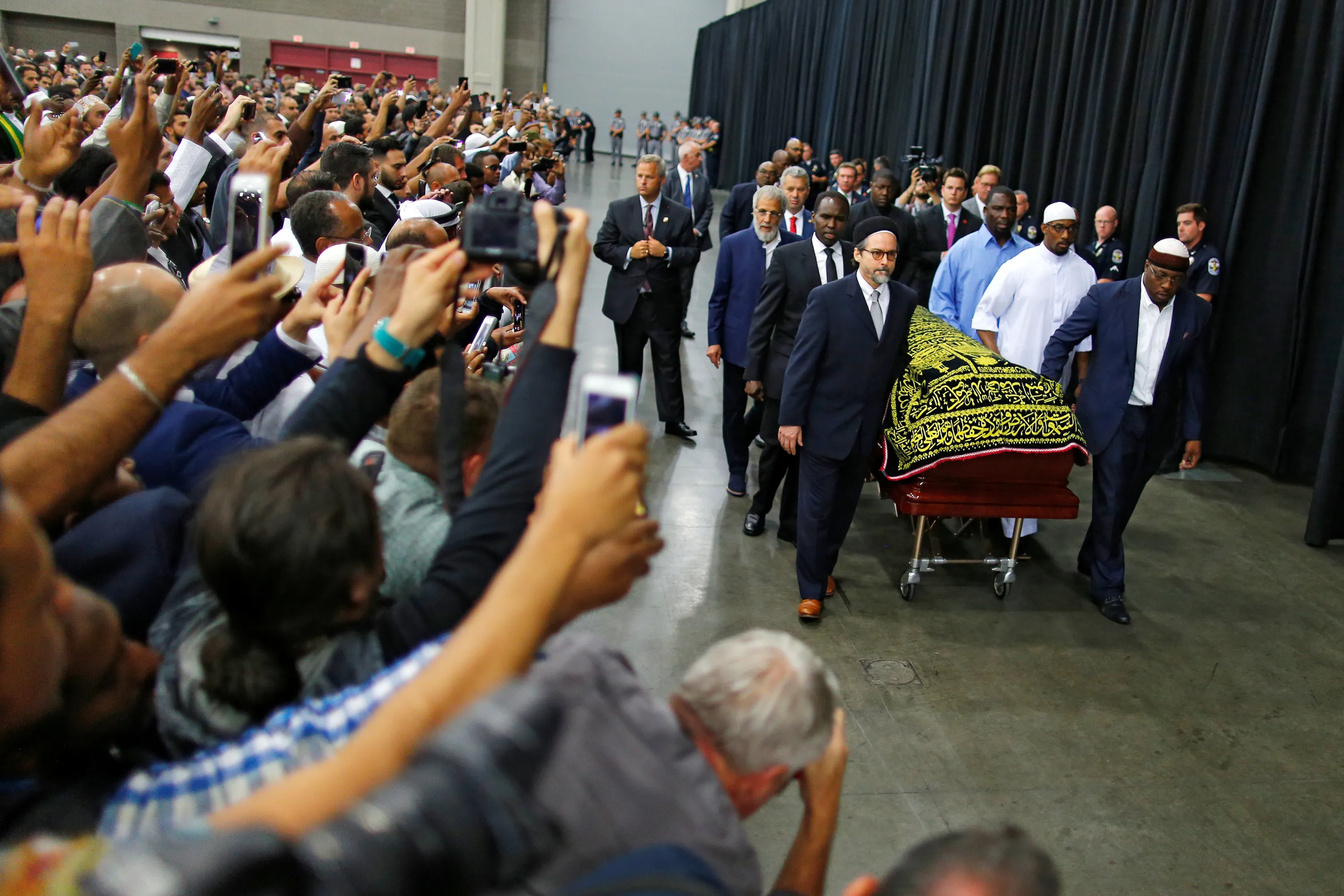 Worshipers and well-wishers take photographs as the casket with the body of the late boxing champion Muhammad Ali is brought for his jenazah, an Islamic funeral prayer, in Louisville, Kentucky, U.S. June 9, 2016. (Photo by Carlos Barria/Reuters)