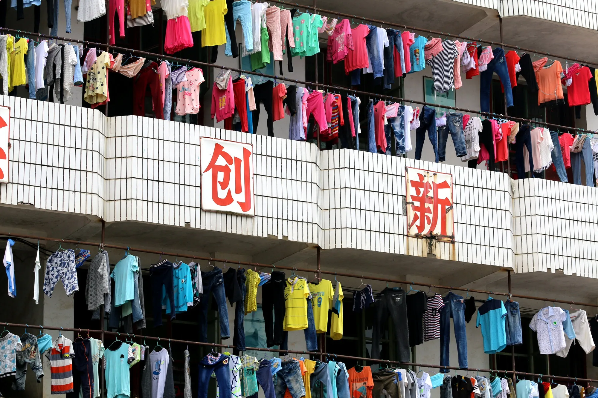 Clothes are hung at a student dormitory in Ji'an, Jiangxi Province, China, June 13, 2016. The characters read, “Innovation”. (Photo by Reuters/China Daily)