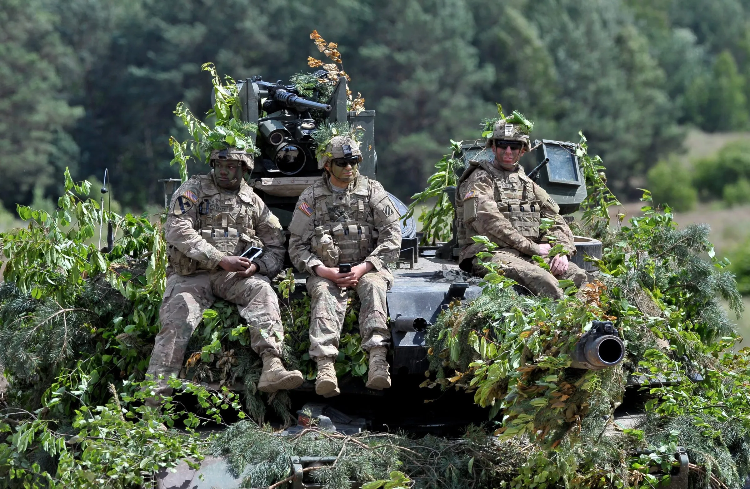US soldiers sit atop a M1 Abrams tank during the Anakonda 2016 military exercise at the military training grounds near Drawsko Pomorskie, Poland, 16 June 2016. The Polish-led multinational exercise is conducted with allies and partners from 24 countries between 07 and 17 June 2016. The exercise is expected to include 31,000 soldiers, including some 12,000 Polish troops. (Photo by Marcin Bielecki/EPA)