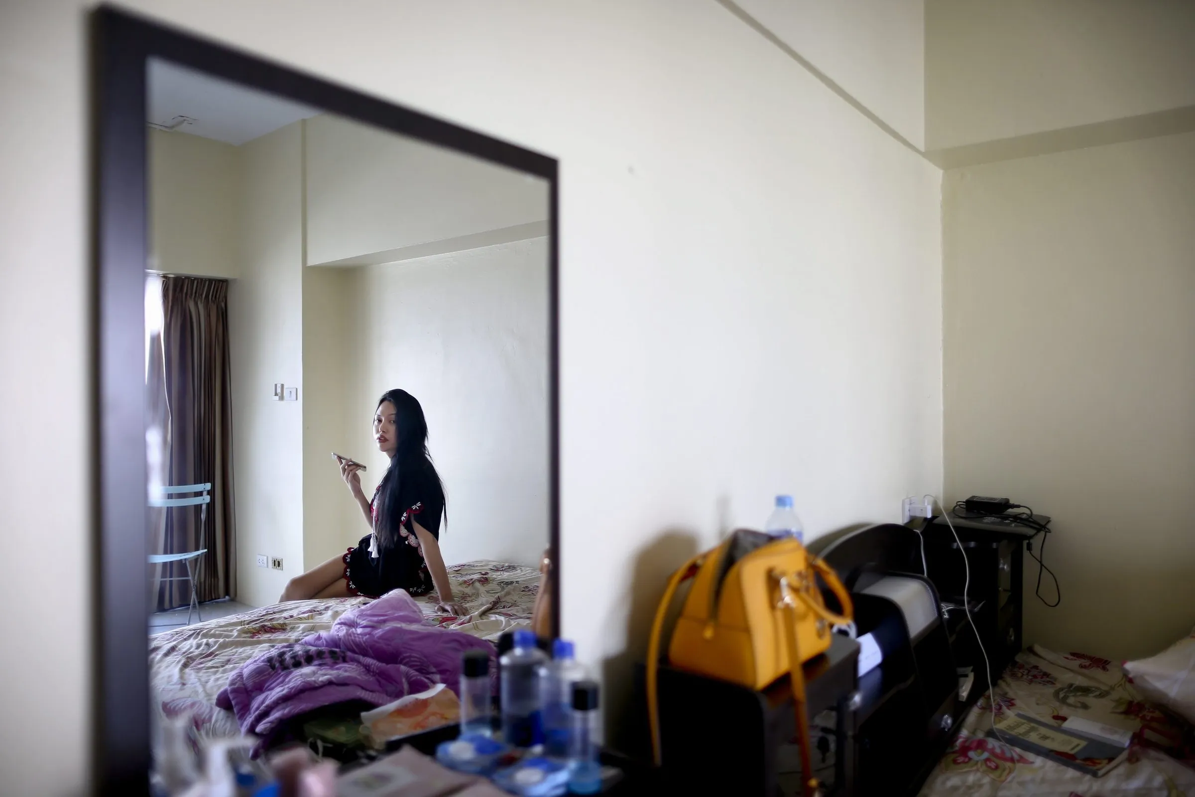 A picture made available on 22 June 2016 shows Myanmar make-up artist Ma Htet listening to music on a mobile phone as she recovers at a friend's apartment after undergoing gender reassignment surgery in Bangkok, Thailand, 20 April 2016. According to media reports, Thailand, a popular overseas destination for patients seeking for sex-reassignment surgery, is leading in the growing practice of transgender surgery with low-cost health care and surgeons trained to perform male-to-female procedures. (Photo by Diego Azubel/EPA)