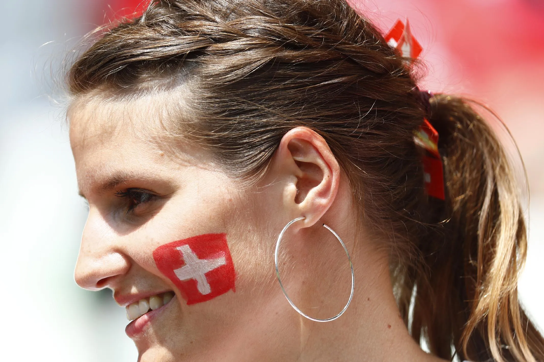 Football Soccer, Switzerland vs Poland, EURO 2016, Round of 16, Stade Geoffroy-Guichard, Saint-Étienne, France on June 25, 2016. Switzerland fan before the game. (Photo by Kai Pfaffenbach/Reuters/Livepic)