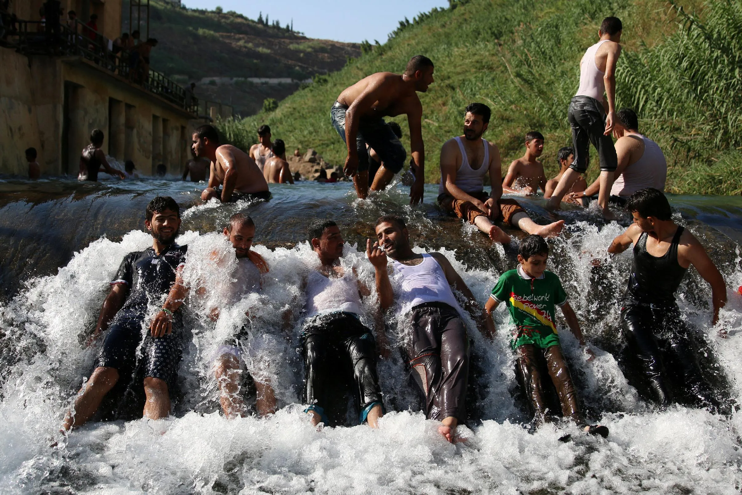 Men cool down in Glen river, in Deraa Governorate, Syria June 25, 2016. (Photo by Alaa Al-Faqir/Reuters)