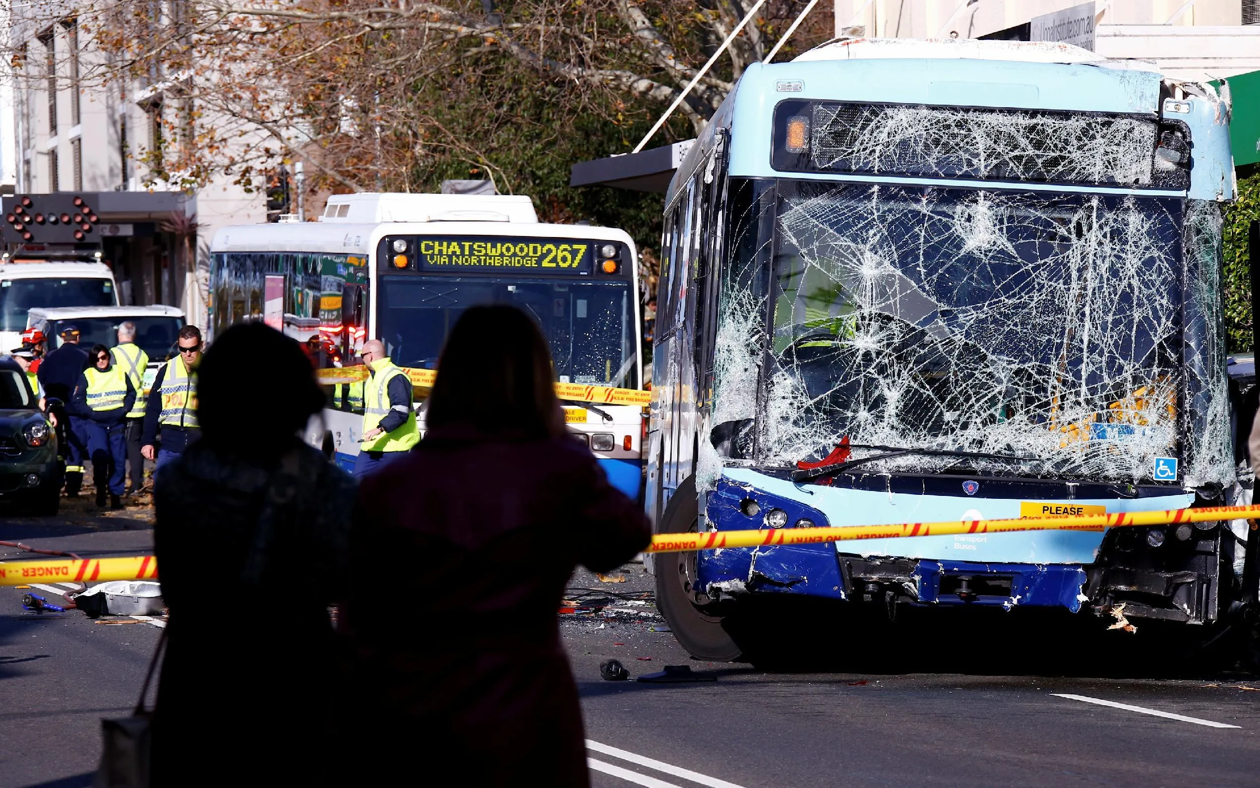 Member of the public look on as firemen and policeman inpsect a bus which crashed into parked cars along a main road in Sydney, Australia, July 1, 2016. (Photo by David Gray/Reuters)