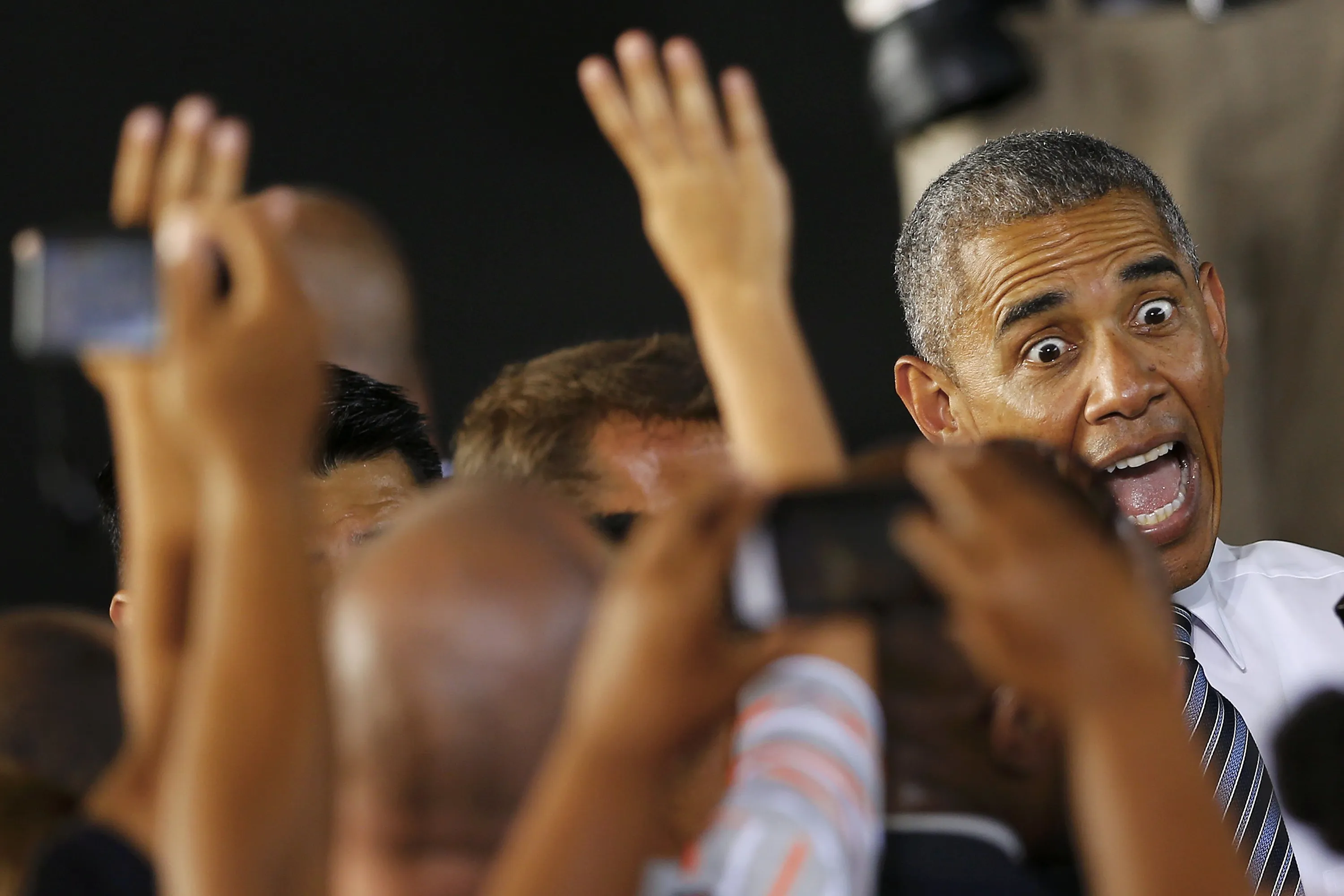 U.S President Barack Obama reacts while greeting the families of U.S army service members after his speech at the Rota naval airbase, near Cadiz, Spain, July 10, 2016. (Photo by Marcelo Del Pozo/Reuters)