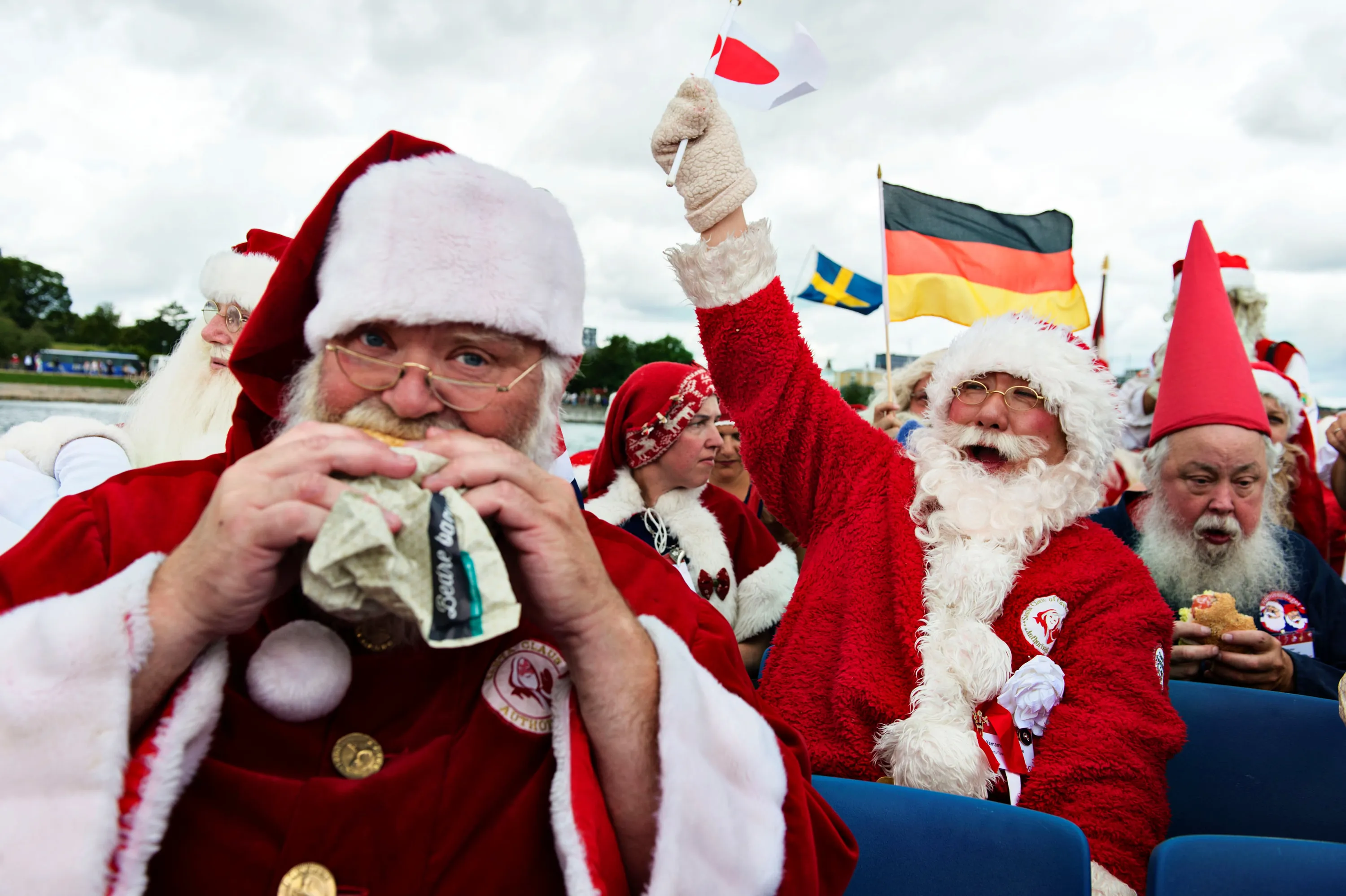 Participants from different countries take part in the 59th World Santa Convention in Copenhagen July 18, 2016. (Photo by Mathias Loevgreen Bojesen/Reuters/Scanpix Denmark)