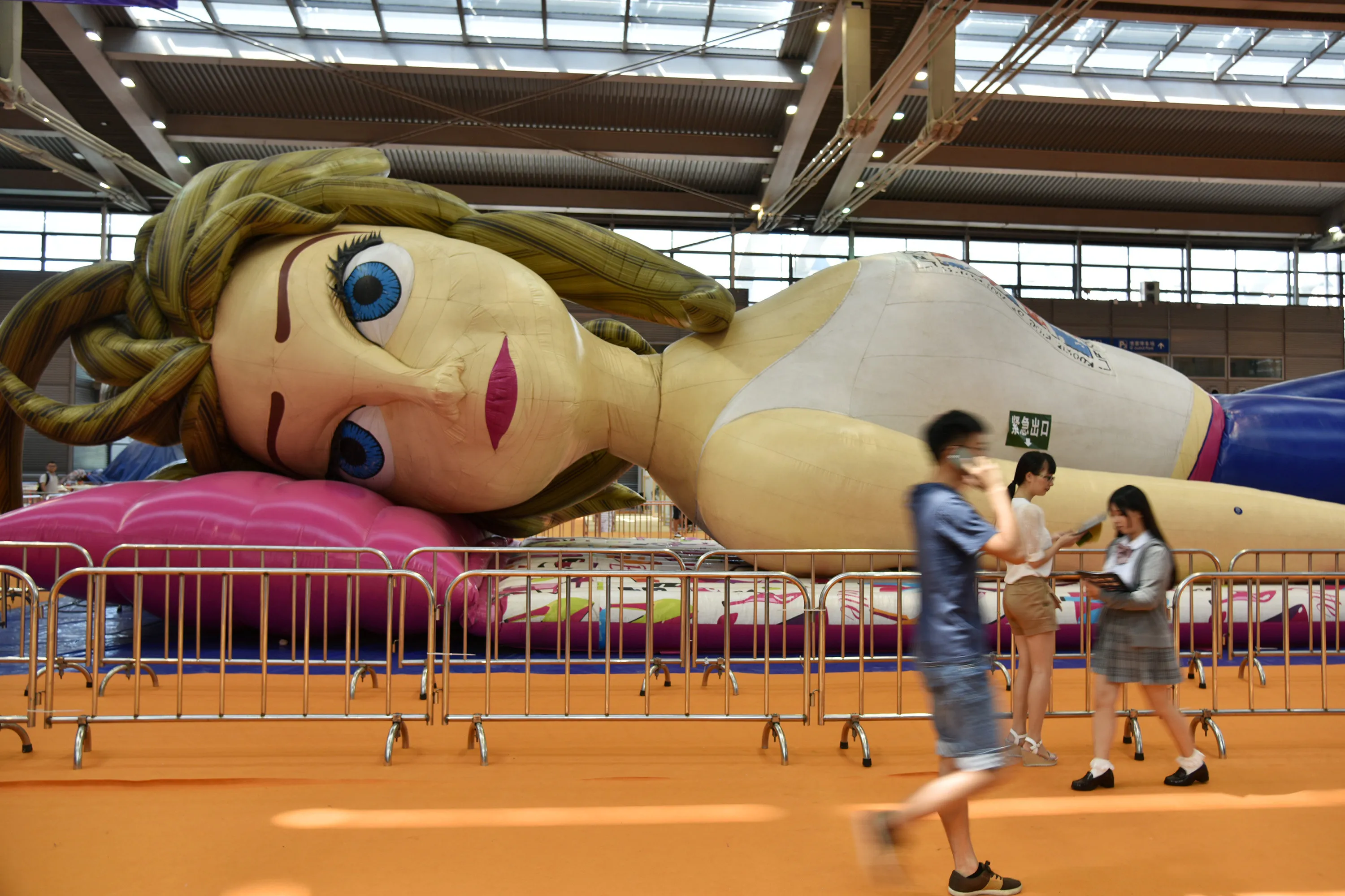 People walk past a giant inflatable doll presented during Comic-Con in Shenzhen, Guangdong Province, China, July 23, 2016. (Photo by Reuters/Stringer)
