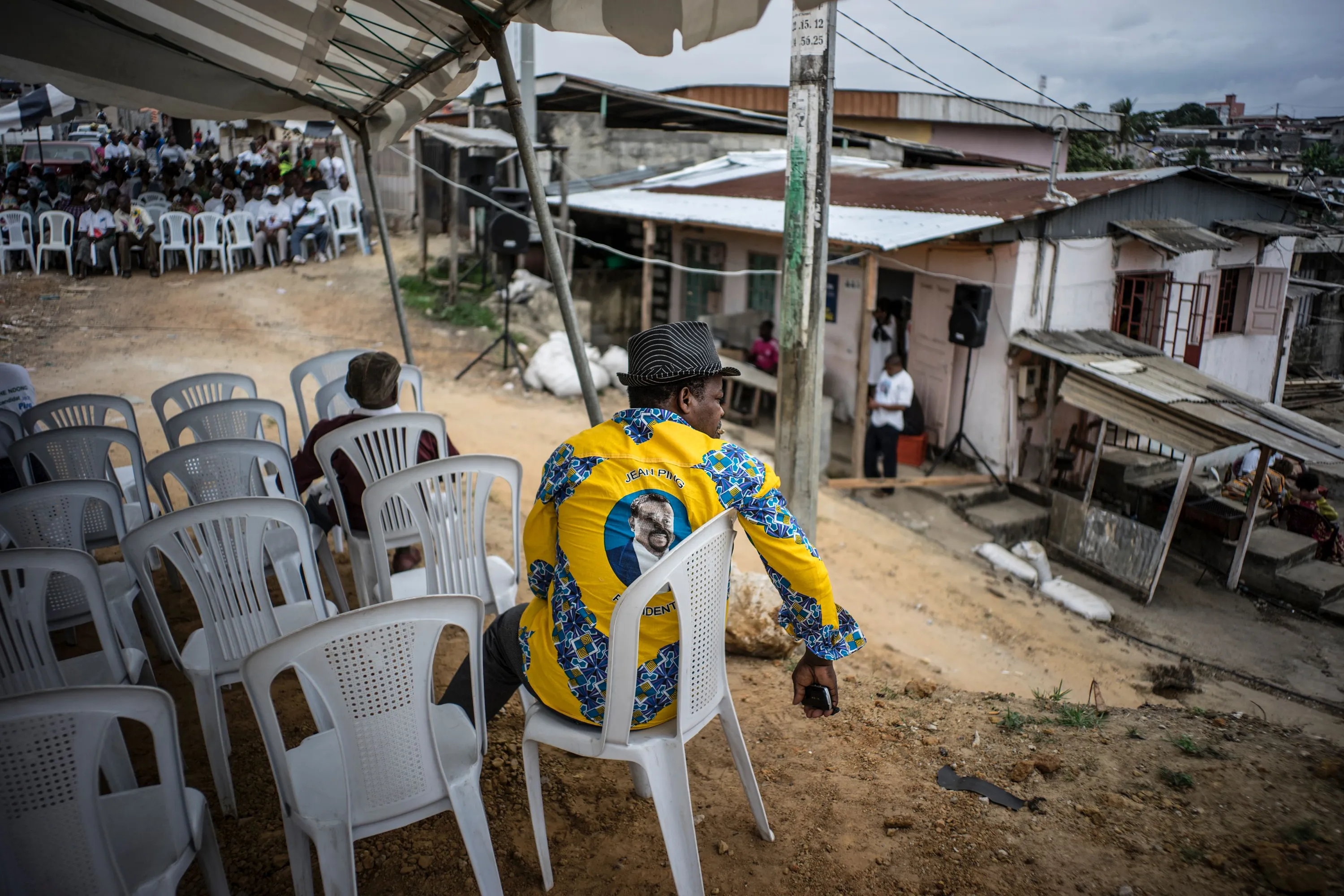 A supporter of the Gabonese opposition leader Jean Ping sits in the second district of the capital Libreville for a campaign rally on August 22, 2016. The one round Presidential elections in Gabon held on August 27, 2016, will oppose Gabonese President Ali Bongo Ondimba to the former President of the Commission of the African Union Jean Ping, who rallied two other heavyweights of politics. (Photo by Marco Longari/AFP Photo)