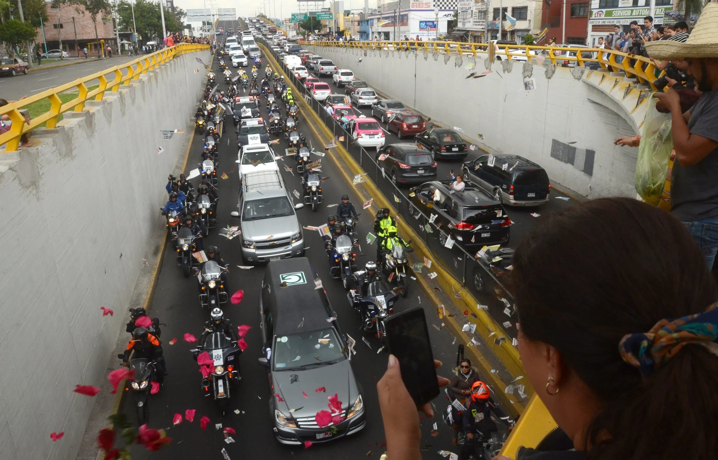 Followers of late Mexican singer and songwriter Juan Gabriel observe his funeral procession in Mexico City, Mexico, 05 September 2016. Thousands of people waited for the ashes of Juan Gabriel, which will be presented at the Fine Arts Palace for a tribute. (Photo by EPA/Stringer)