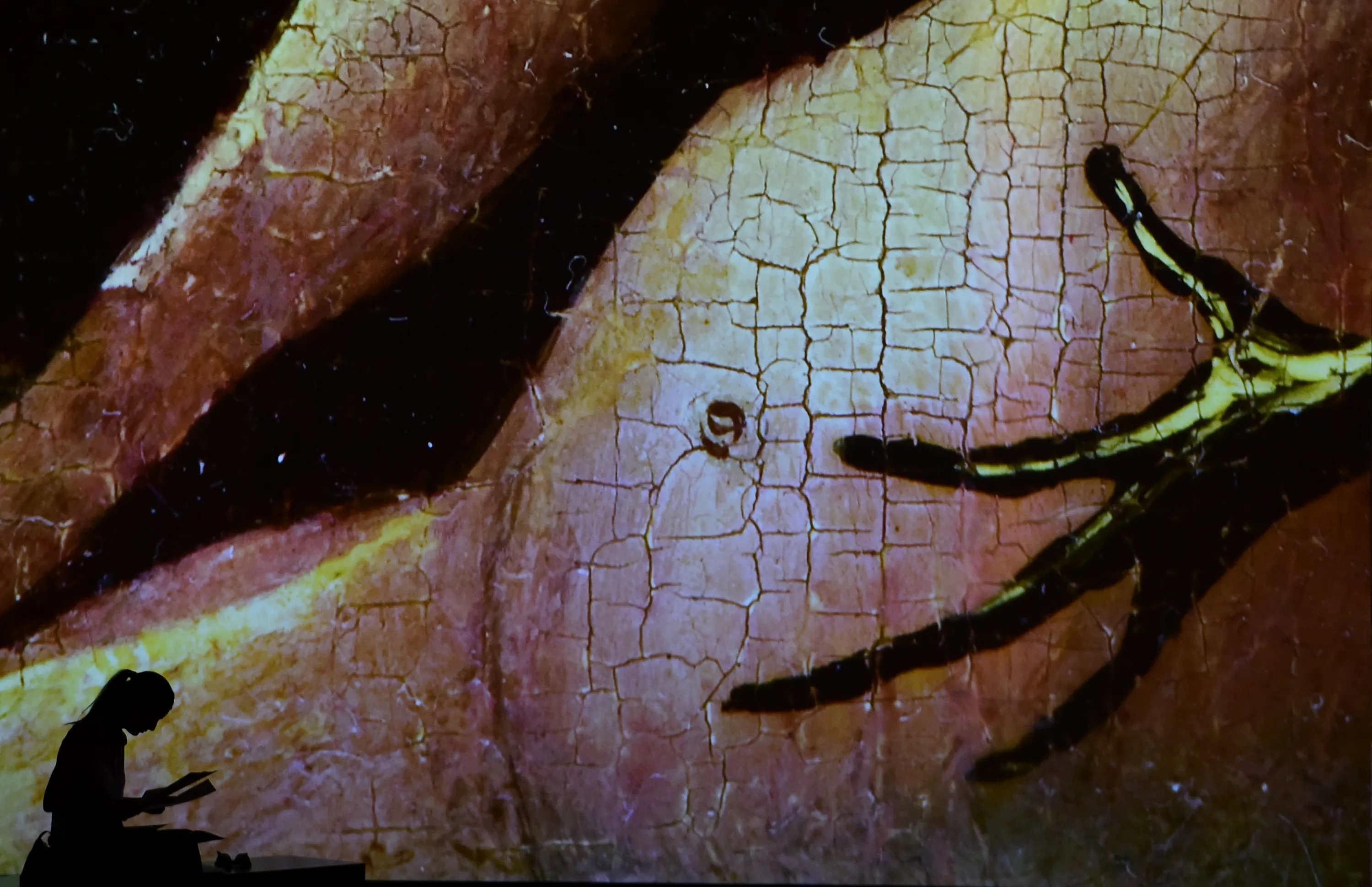 A woman visits a video installation on Dutch painter Hieronymus Bosch's masterpiece “The Garden of Earthly Delights” at El Prado museum in Madrid on July 5, 2016. (Photo by Pierre-Philippe Marcou/AFP Photo)