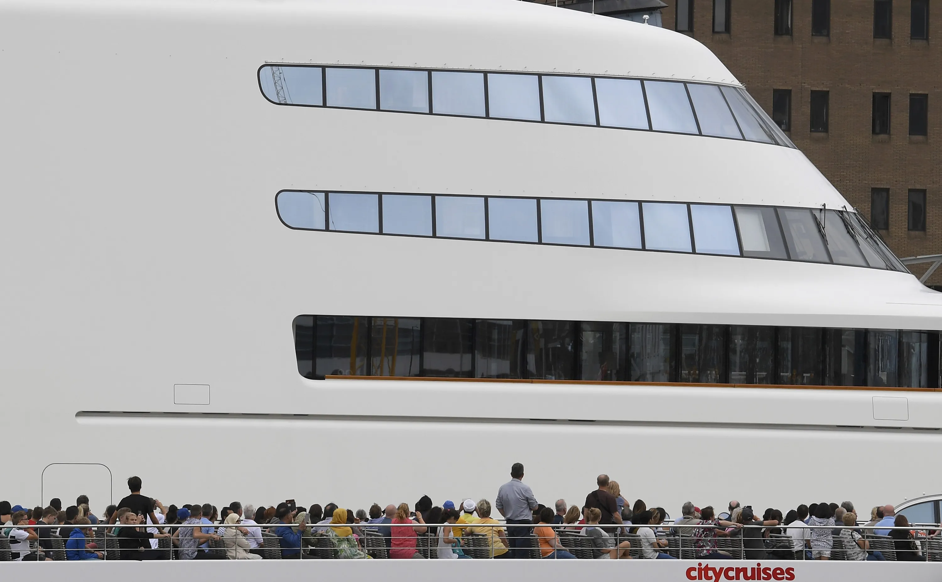 Passengers on a river cruise boat pass superyacht Motor Yacht A, owned by Russian tycoon Andrey Melnichenko, moored on the River Thames in London, Britain September 6, 2016. (Photo by Toby Melville/Reuters)