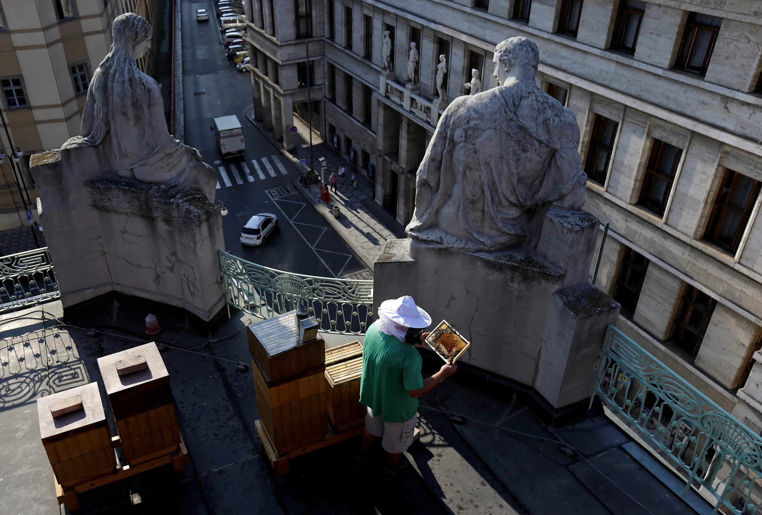 Beekeeper Zdenek Ruzicka checks a honeycomb from a beehive placed on the roof of the Prague City Hall in Prague, Czech Republic September 7, 2016. (Photo by David W. Cerny/Reuters)