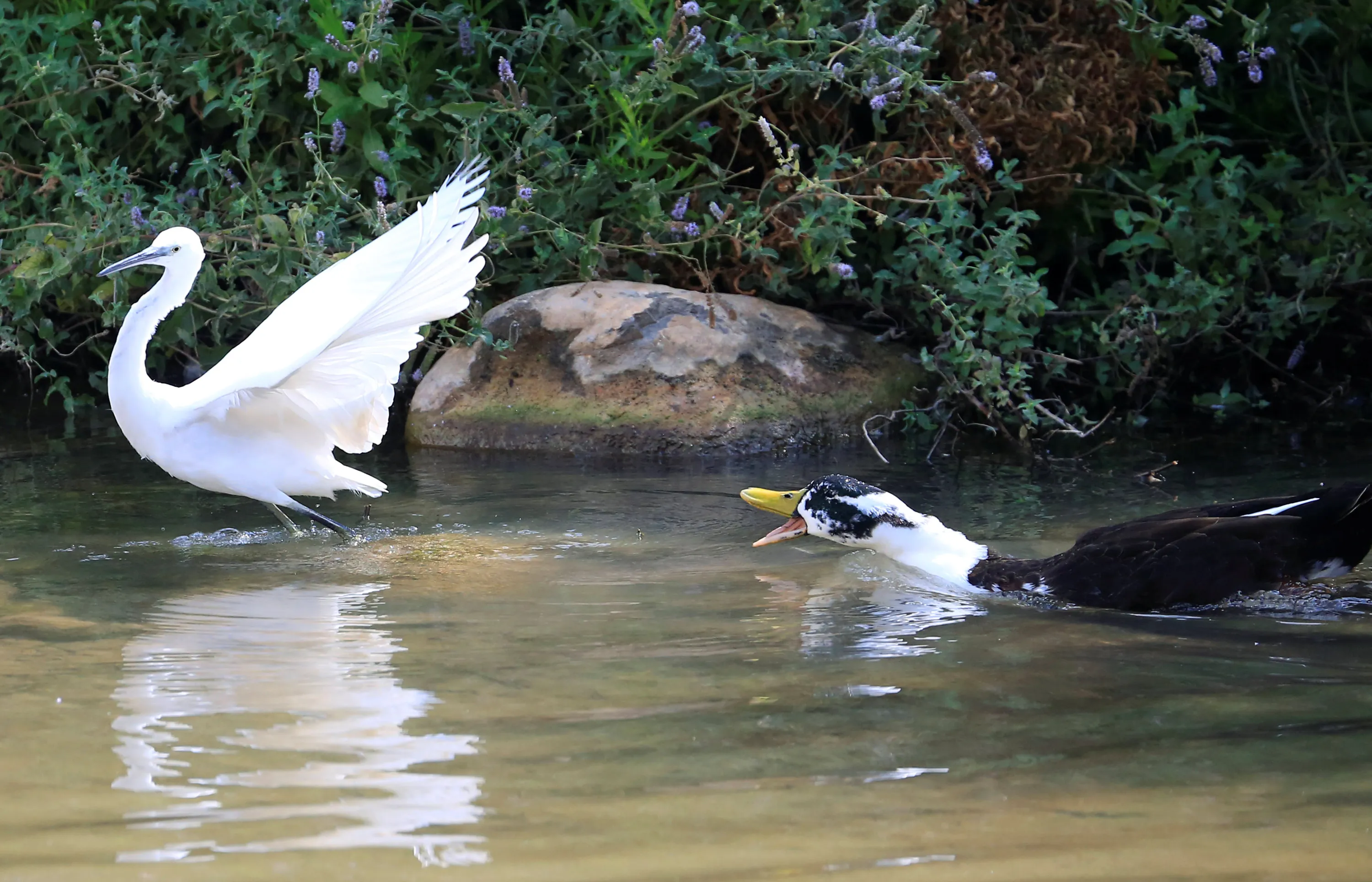 A duck and a migrant bird are seen at Wazzani river near Khiam village, south Lebanon, September 4, 2016. (Photo by Jamal Saidi/Reuters)