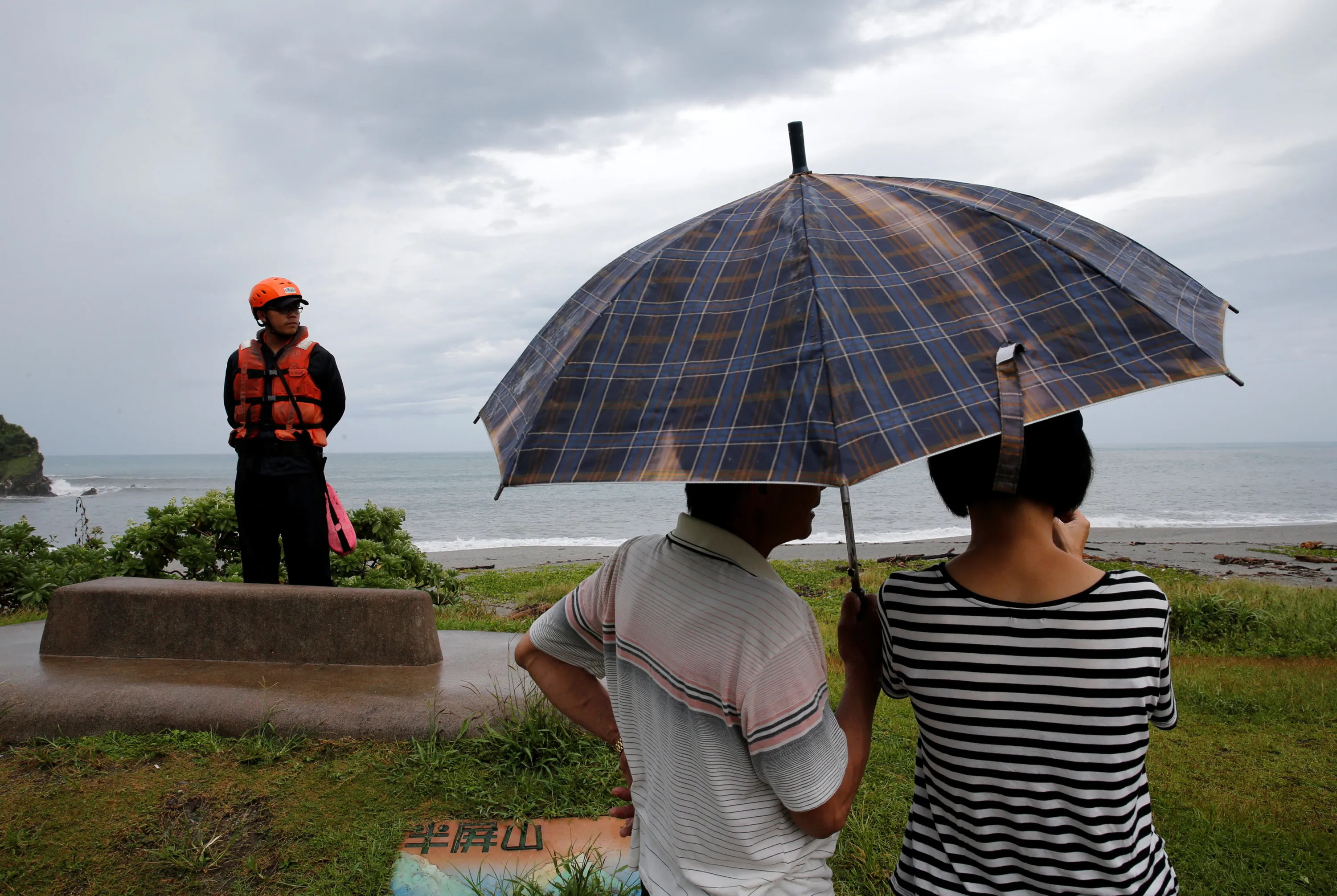 A coast guard stands guard at the coast as Typhoon Malakas approaches in Yilan, Taiwan September 17, 2016. (Photo by Tyrone Siu/Reuters)