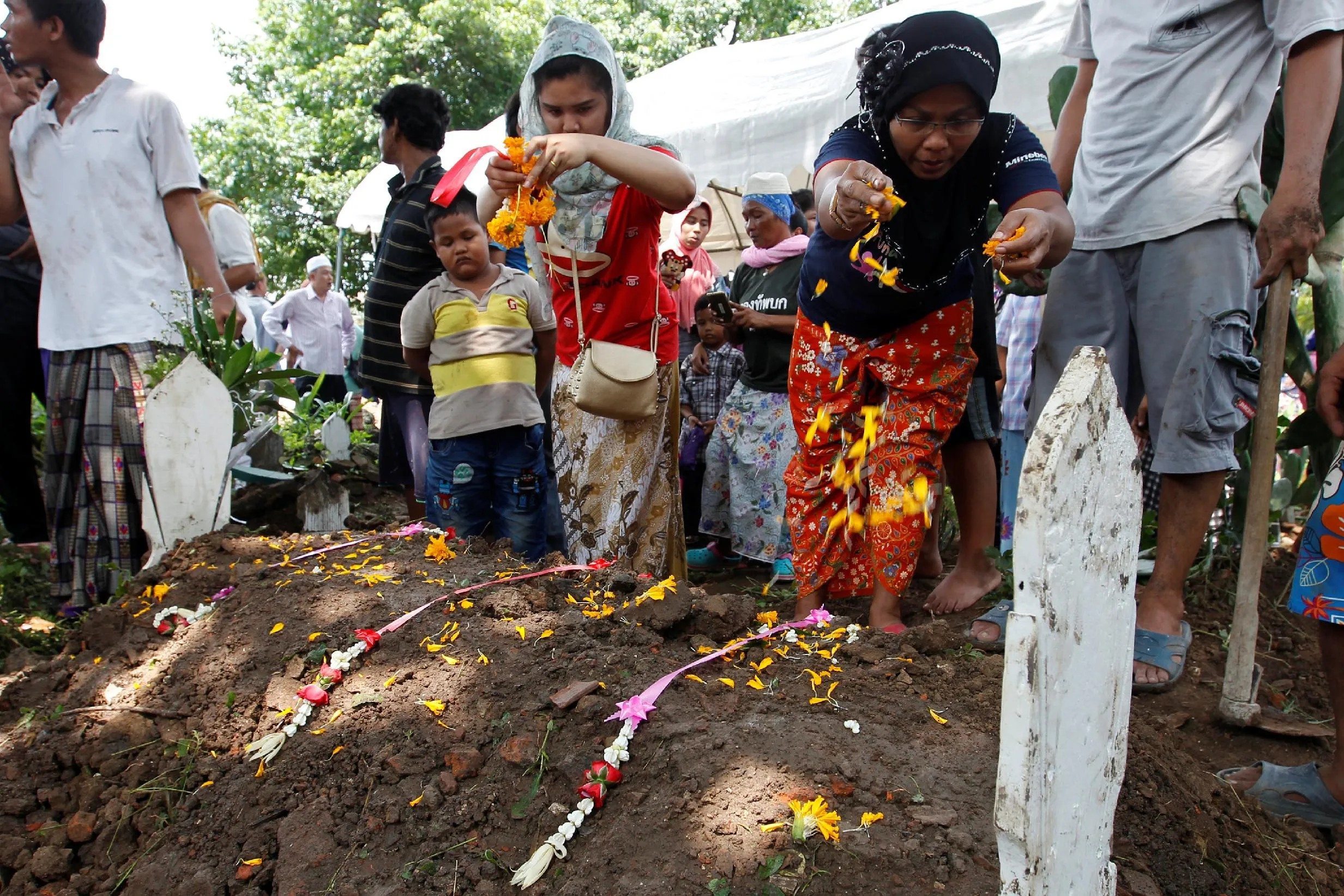 Relatives of a victim of a capsized boat on the Chao Phraya river, decorate a grave during a funeral at a graveyard in the ancient tourist city of Ayutthaya, Thailand September 19, 2016. (Photo by Chaiwat Subprasom/Reuters)