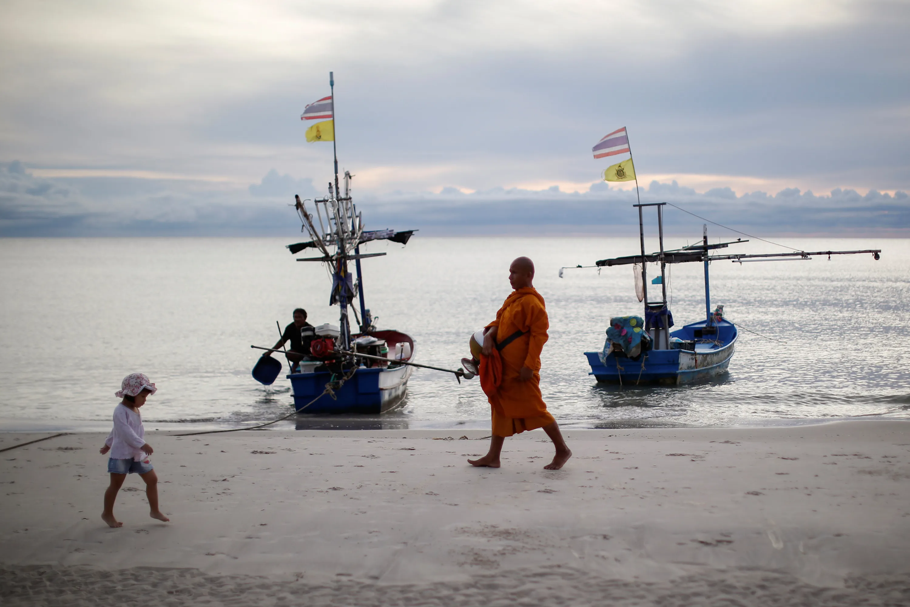 A Buddhist monk and a child walk on a beach in Hua Hin, Thailand September 19, 2016. (Photo by Jorge Silva/Reuters)