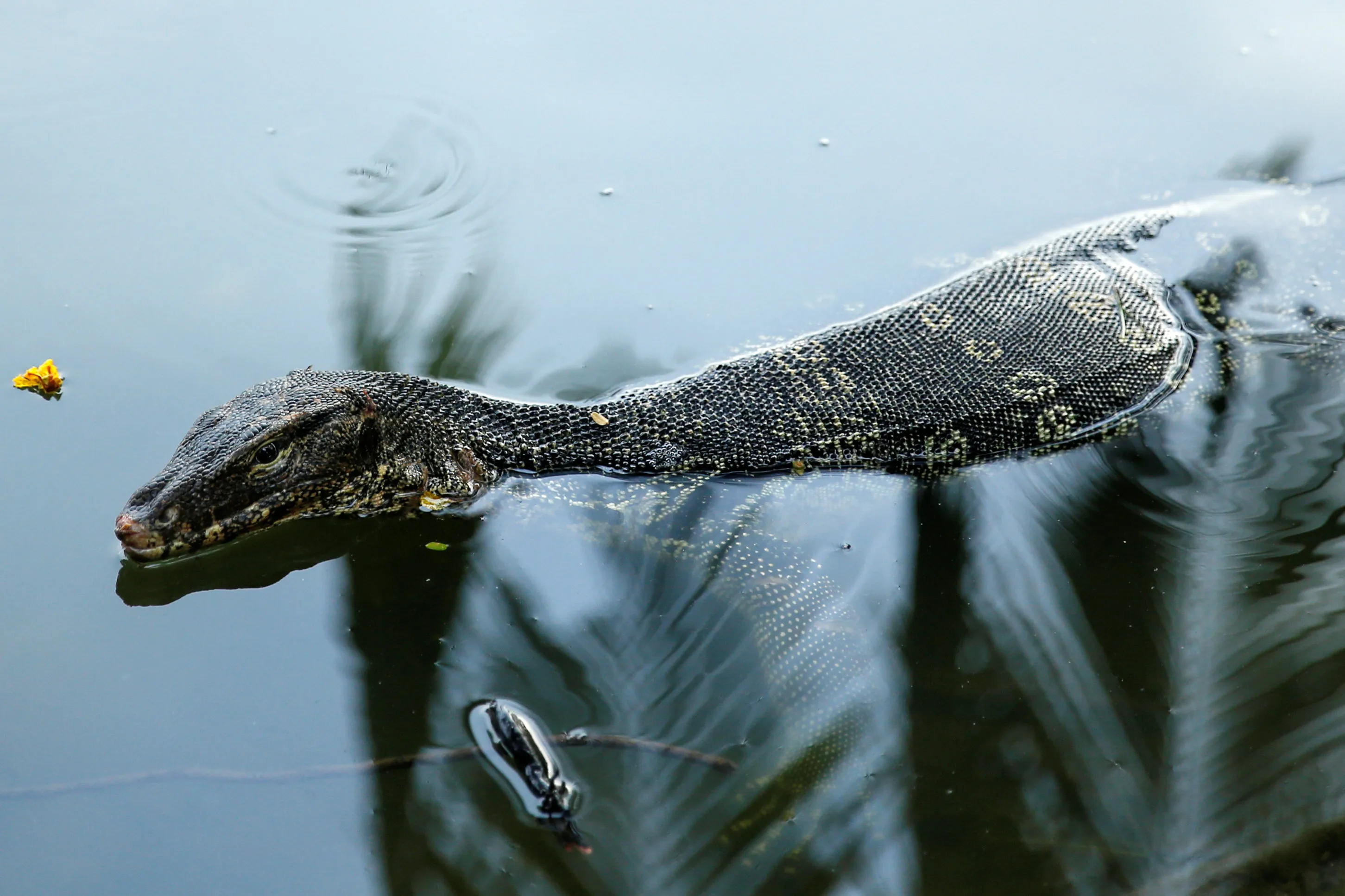 A monitor lizard swims at a lake at Lumpini park in Bangkok, Thailand, July 11, 2016. Picture taken July 11, 2016. (Photo by Jorge Silva/Reuters)
