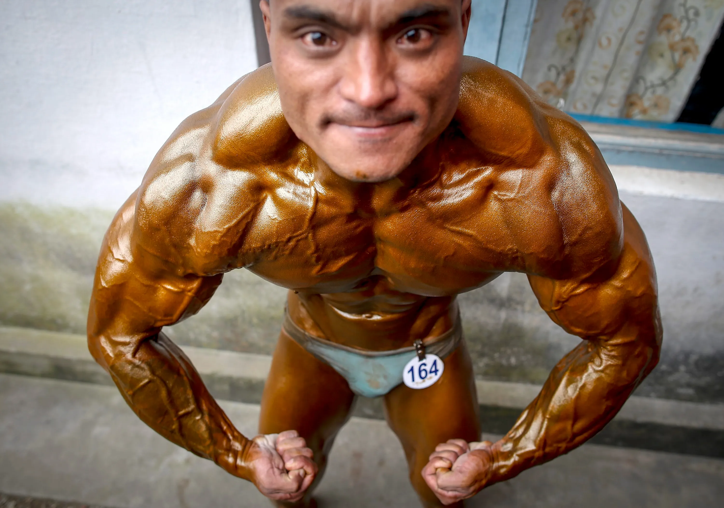 Nepalese bodybuilder pose before taking part in the first round of the Dharmashree nationwide bodybuilding championship in Kathmandu, Nepal, 29 September 2016. Hundreds of body builders from across the country took part in body building championship qualifiers. (Photo by Narendra Shrestha/EPA)