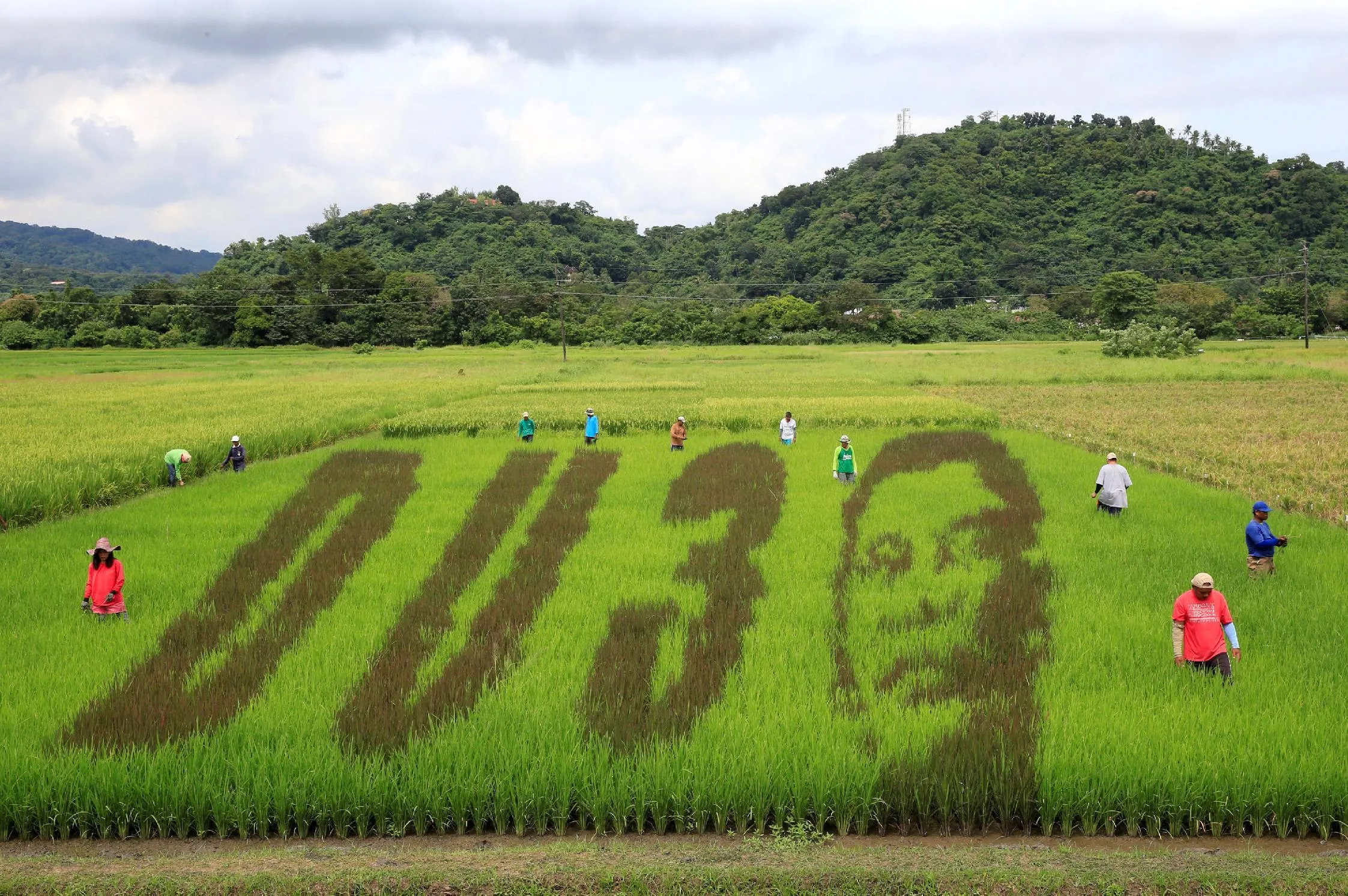 An artwork featuring the image of Philippine President Rodrigo Duterte with the letters D U and the number 3, a word play on the President's surname “DU30”, is seen on a rice paddy in Los Banos city, Laguna province, south of Manila October 6, 2016. (Photo by Romeo Ranoco/Reuters)