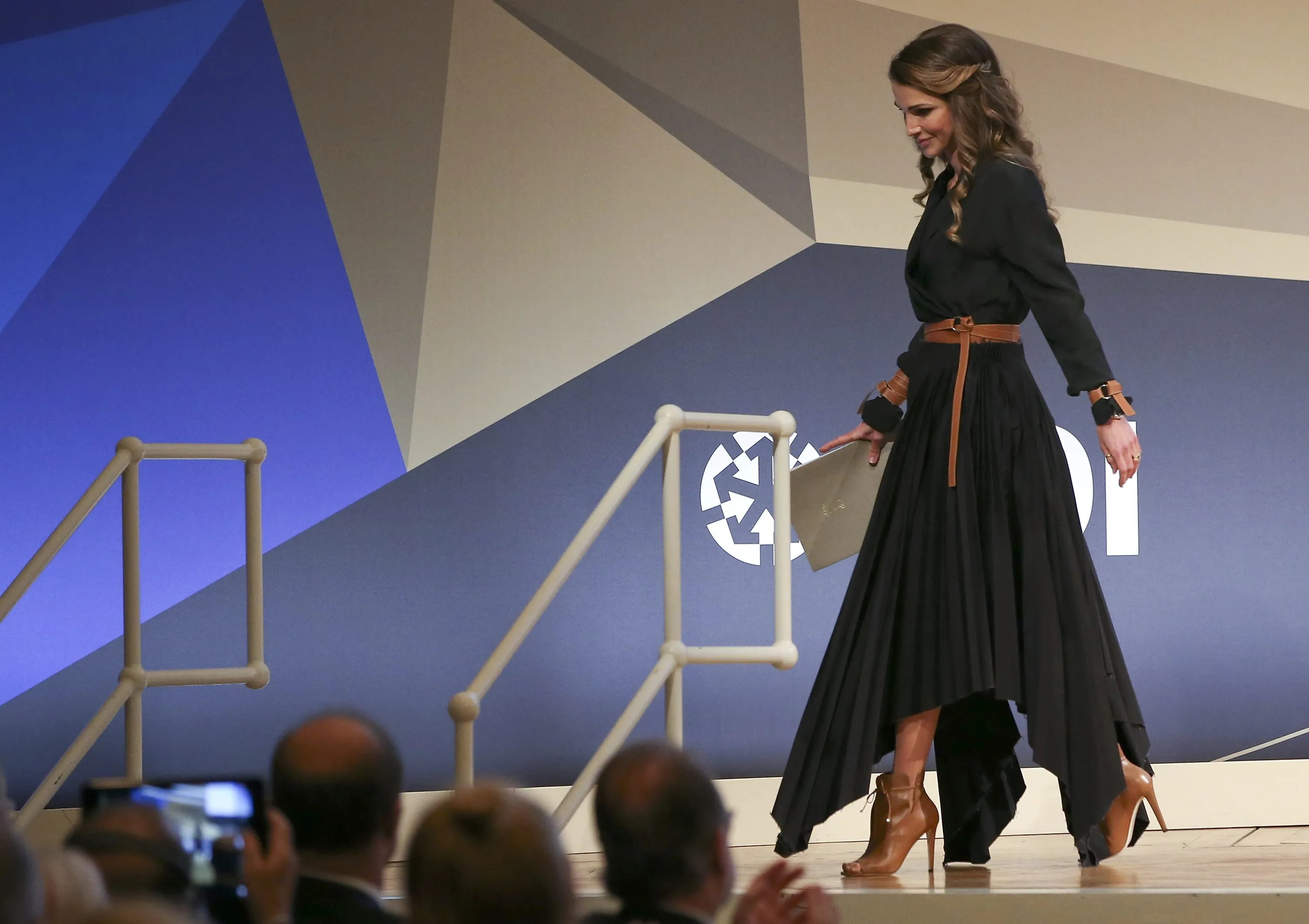Queen Rania of Jordan leaves the stage after her speech at the Day of German Industry 2016 conference in Berlin, Germany, October 6, 2016. (Photo by Fabrizio Bensch/Reuters)