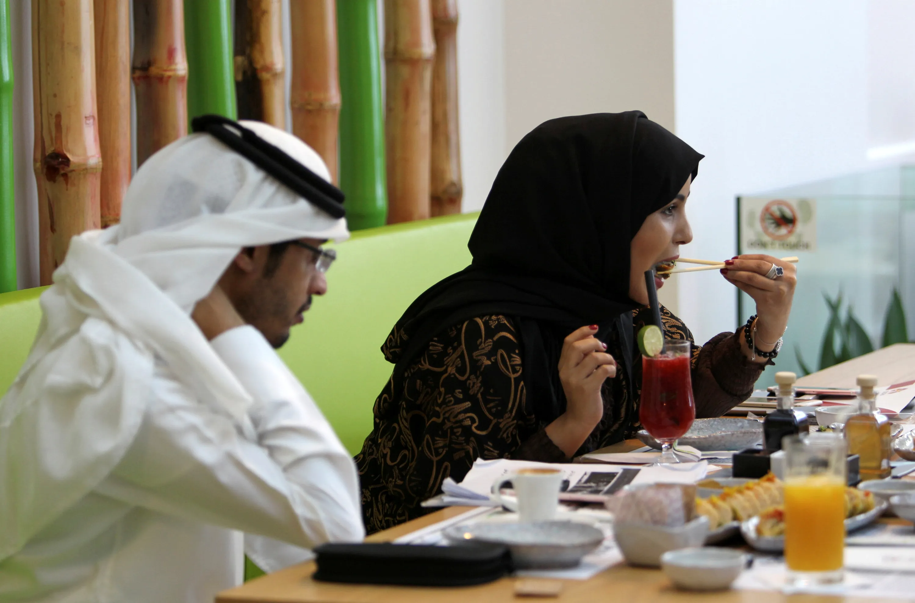 A woman has Arabic Sushi at Cactus Senshi restaurant in Doha, Qatar October 8, 2016. (Photo by Naseem Zeitoon/Reuters)