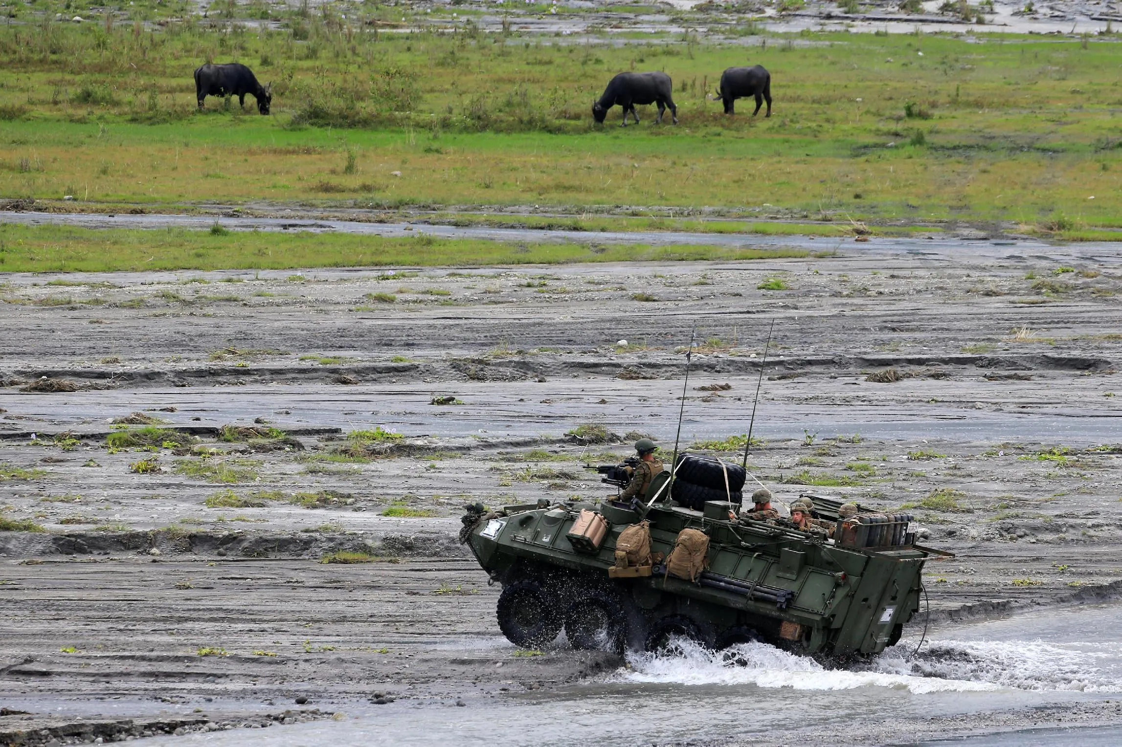 U.S. military forces aboard Light Armored Recon Vehicles (LARV) manoeuvre during the annual Philippines-US live fire amphibious landing exercise (PHIBLEX) at Crow Valley in Capas, Tarlac province, north of Manila, Philippines October 10, 2016. (Photo by Romeo Ranoco/Reuters)