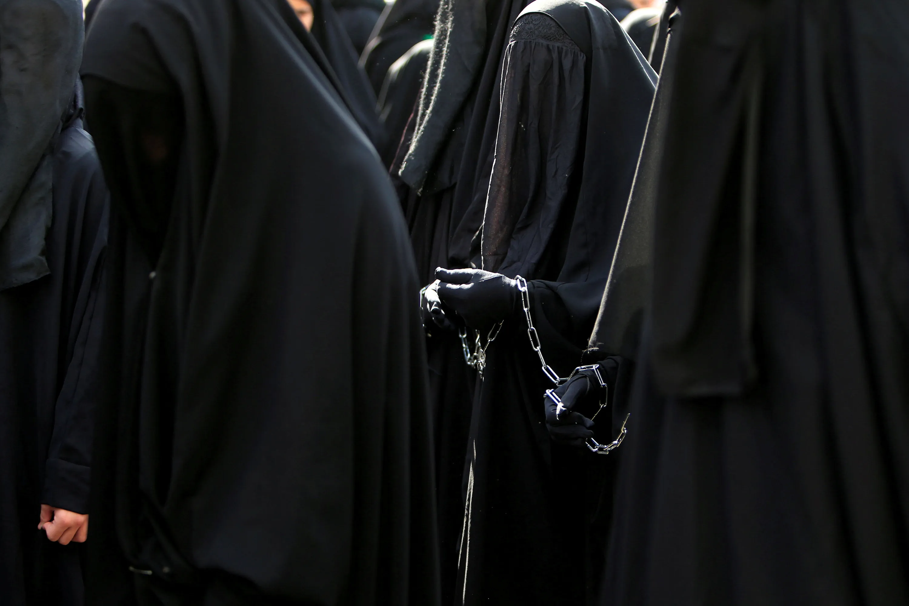 Muslim Shi'ite women are chained to each other march during a re-enactment of the battle of Kerbala during a mourning process, one day before the Shi'ites will mark the day of Ashura, in Nabatiyeh, Lebanon October 11, 2016. (Photo by Ali Hashisho/Reuters)