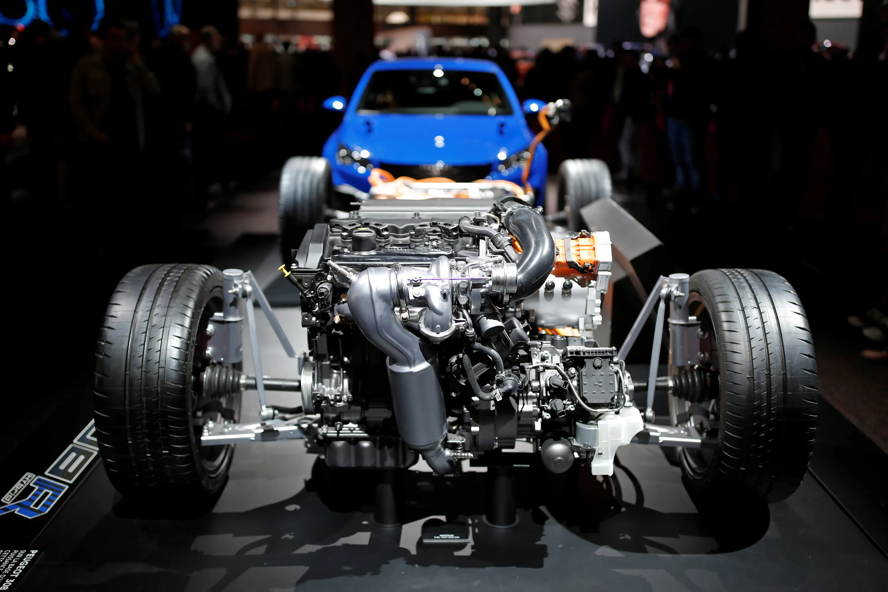 A Peugeot 308 R Hybrid engine is displayed at the Paris auto show, in Paris, France, October 14, 2016. (Photo by Benoit Tessier/Reuters)