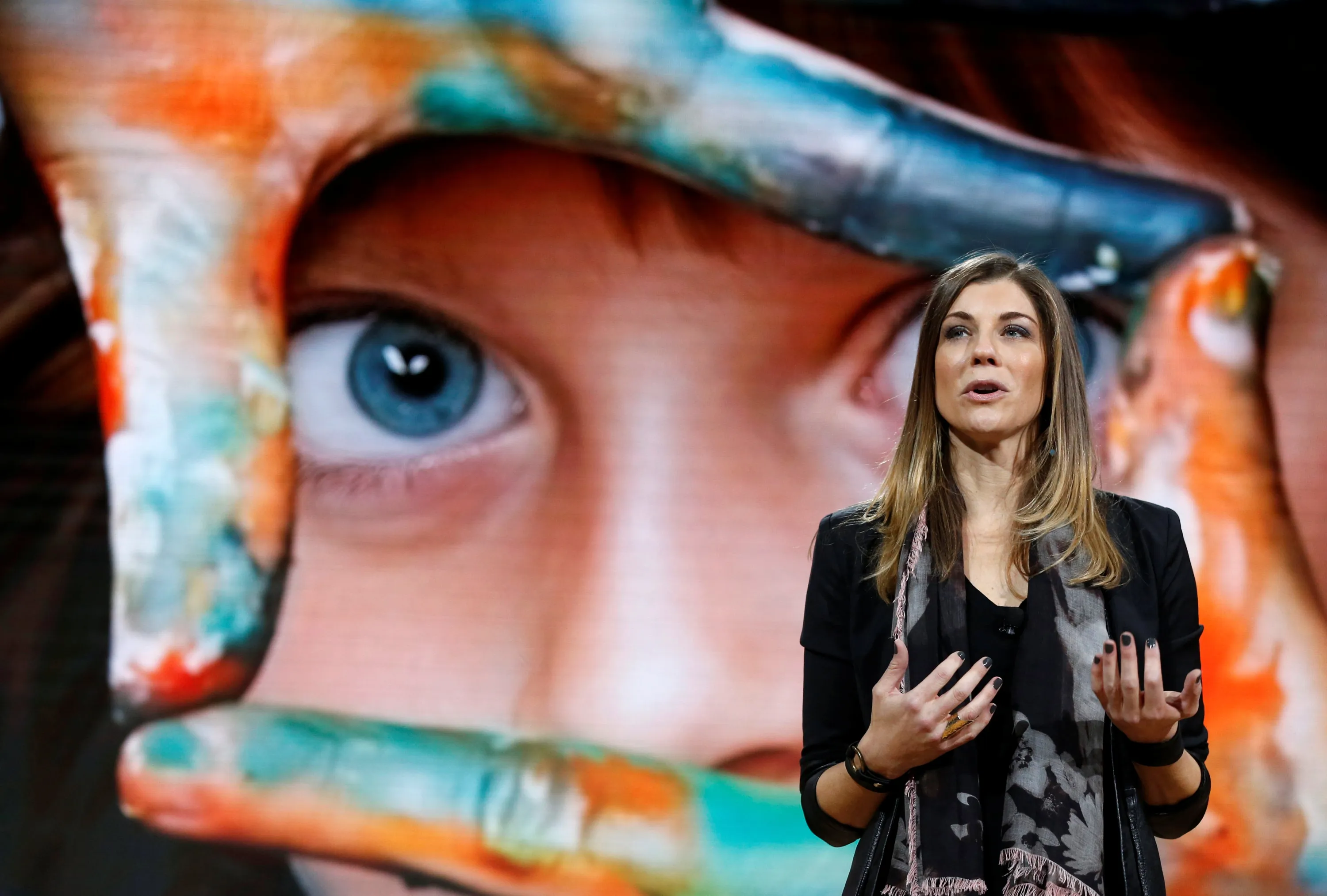 Megan Saunders, Microsoft general manager of HoloLens and other emergent technologies speaks at a live Microsoft event in the Manhattan borough of New York City, October 26, 2016. (Photo by Lucas Jackson/Reuters)