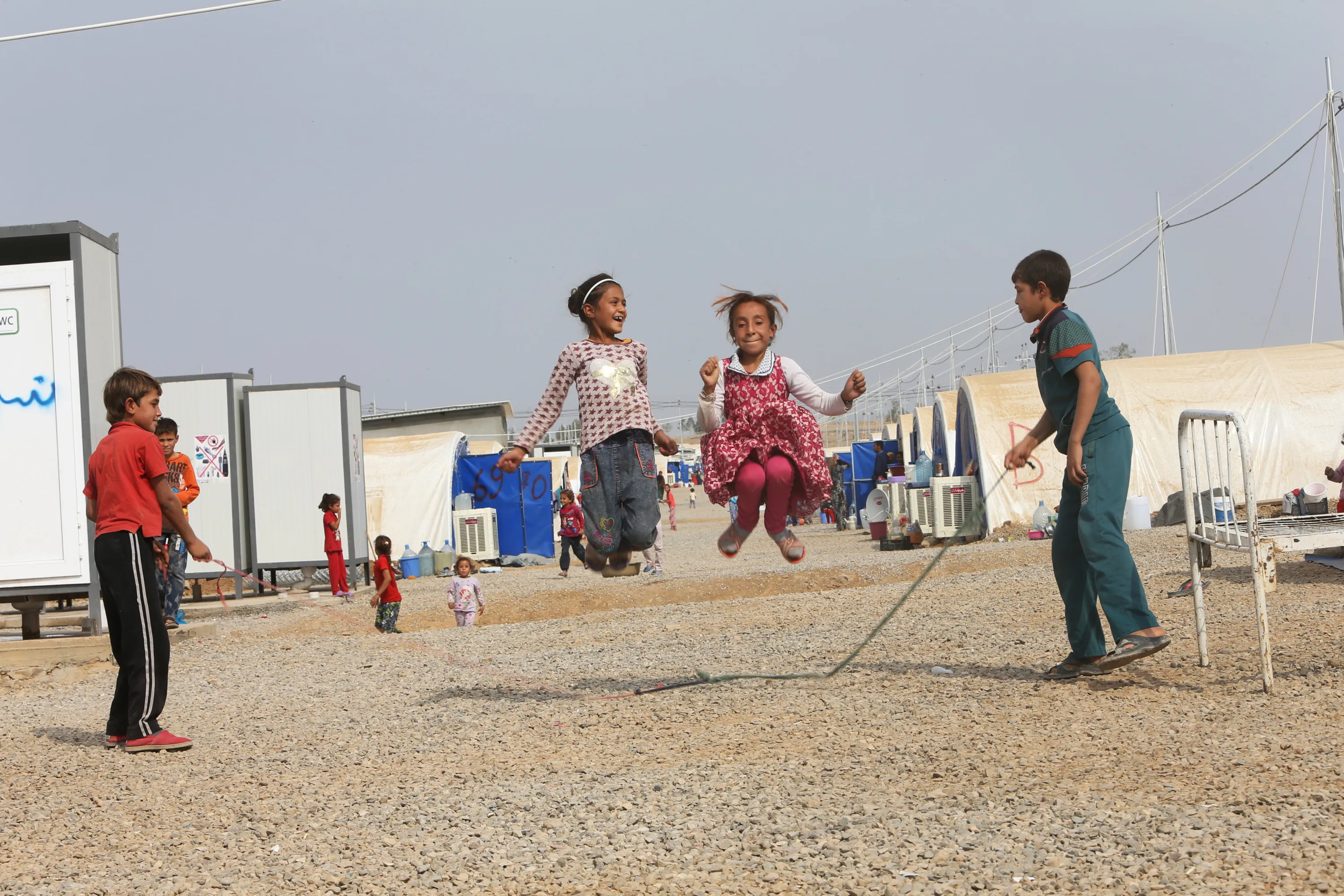 Displaced children who fled Islamic State militants from Mosul play at Debaga camp, on the outskirts of Erbil, Iraq on October 28, 2016. (Photo by Alaa Al-Marjani/Reuters)